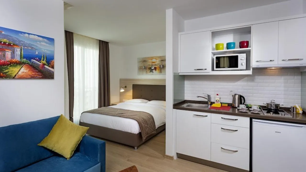 Klima uređaj i centralno grejanje osiguravaju da sobe održavaju udobne temperature. Gosti mogu uživati u pogledu na grad sa balkona ili terase. Sobe imaju bračni krevet ili krevet queen size. Dodatni kreveti mogu biti zatraženi. Sef pruža siguran prostor za čuvanje lične imovine gostiju. Dodatne pogodnosti uključuju frižider, šporet, mikrotalasnu pećnicu i aparate za kafu/čaj. Takođe postoji i veš mašina i set za peglanje. Telefon, televizor sa satelitskim/kablovskim kanalima, radio i WiFi (bez dodatne naplate) su takođe obezbeđeni. Gosti će takođe pronaći papuče u svojim sobama. Kupatila su opremljena tuš kabinom i kadom, kao i fenom za kosu. Za dodatnu udobnost u kupatilima, gostima je na raspolaganju izbor peškira. Porodične sobe su dostupne roditeljima sa decom.