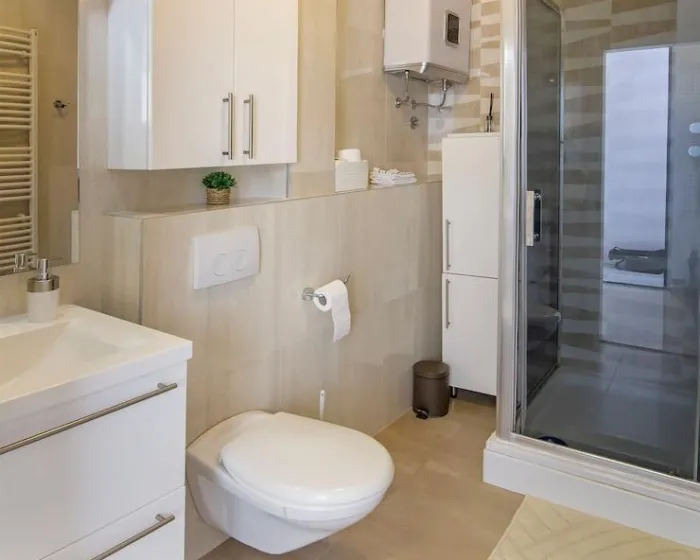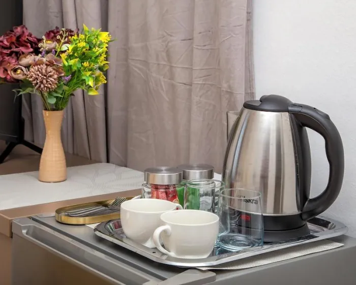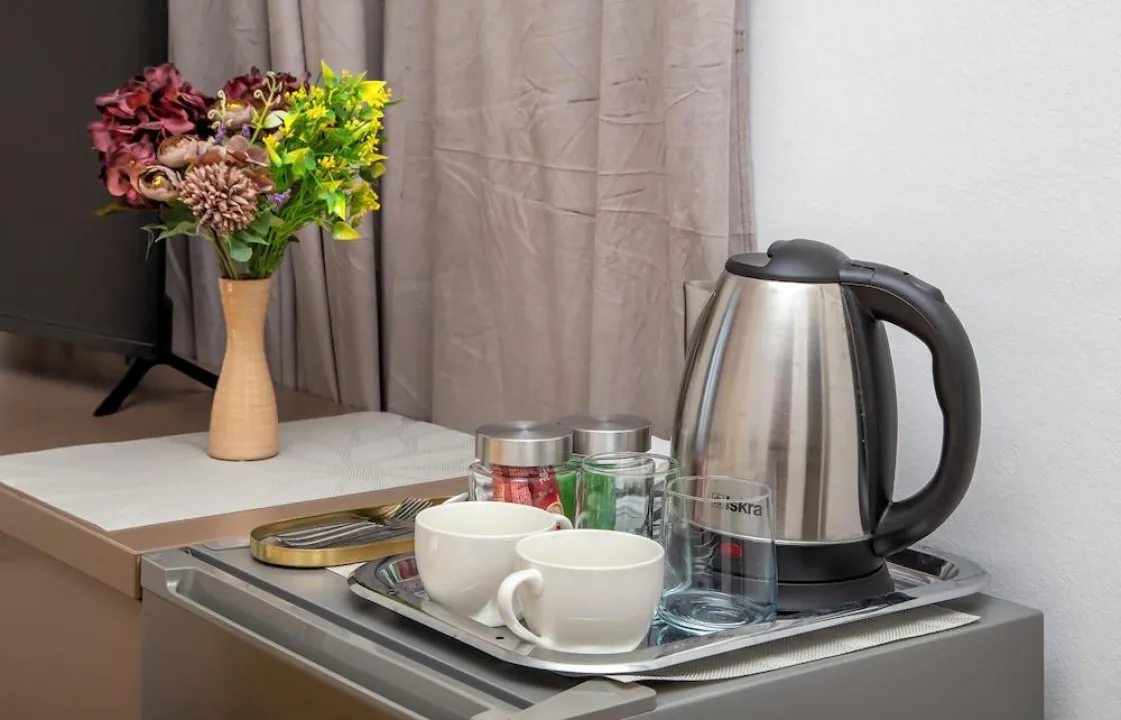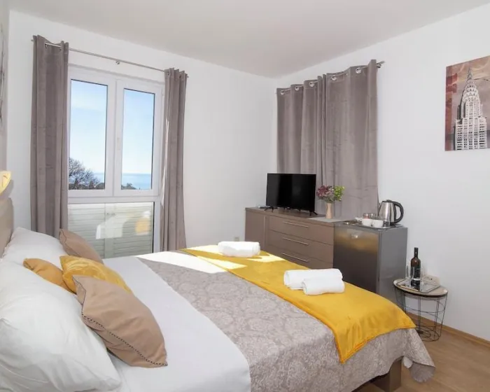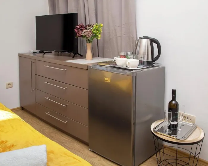 Udobno se smestite u svom klimatizovanom apartmanu, koji ima Smart TV. Opremljenost uključuje električno kuvalo i peglu/daščicu za peglanje.