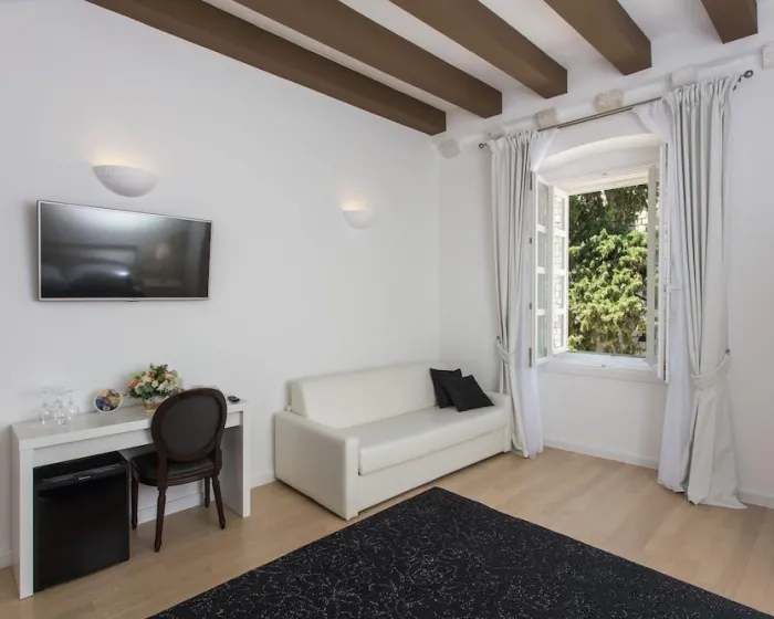 Ovaj krevet i doručak dočekuje goste u Dubrovniku. Osoblje na recepciji je tu da odgovori na sva pitanja. Usluge i sadržaji uključuju uslugu čuvanja prtljaga, sef, uslugu iznajmljivanja automobila i transfer. Bežični internet u javnim prostorima omogućava gostima da ostanu povezani. Sobe hotela imaju centralno grejanje. Sve sobe su sa tepihom i imaju bračni krevet, krevet king size ili sofu. Dodatni kreveti mogu biti zatraženi. Sef, minibar i radni sto su takođe dostupni. Gostima je na raspolaganju i frižider. Telefon, televizor sa satelitskim/kablovskim kanalima i WiFi (bez dodatne naplate) obezbeđuju optimalnu udobnost. Kupatila su opremljena tušem i fenom za kosu. Kao poseban dodatak, kupatila su opremljena kozmetičkim proizvodima i izborom peškira. Hotel ima sobe za nepušače. Suncem okupani terasom može se uživati u lepom vremenu. Obroci se serviraju u restoranu na licu mesta.