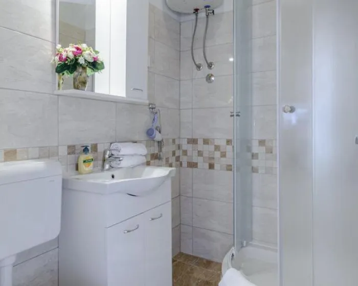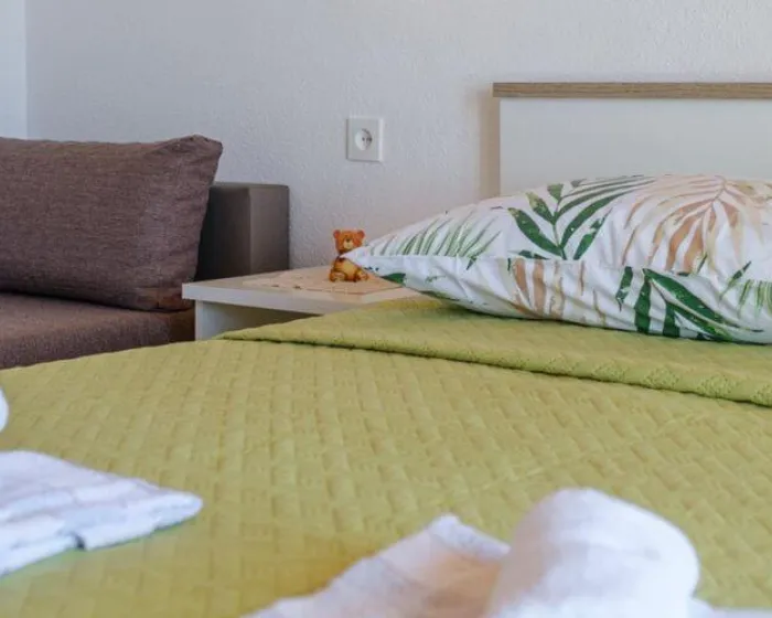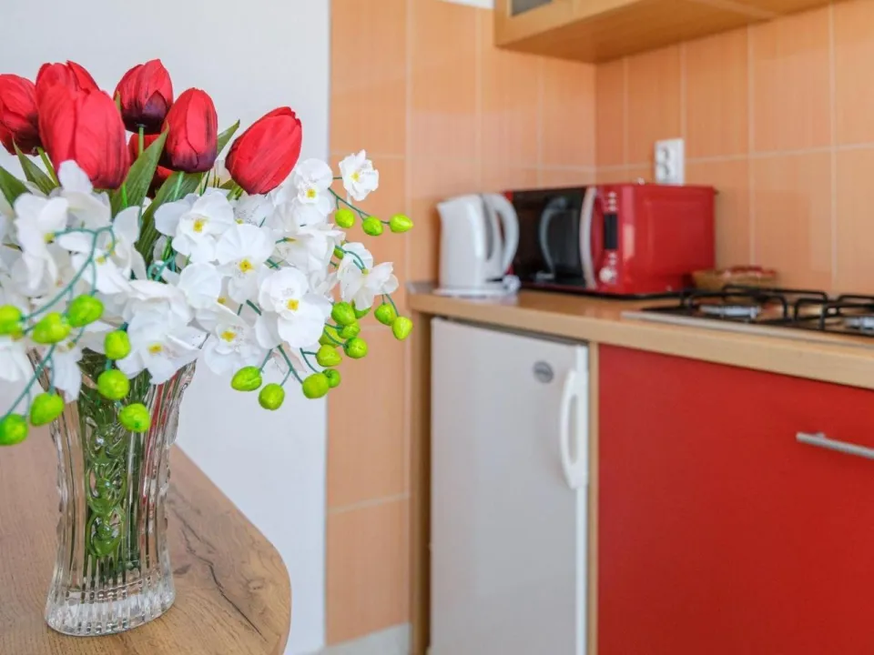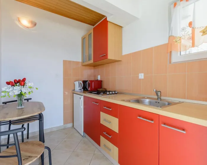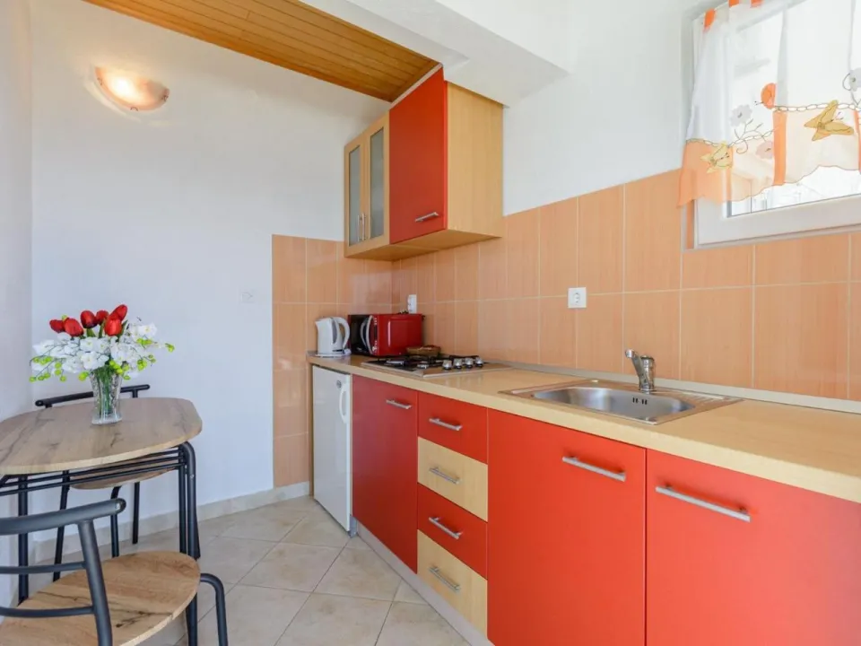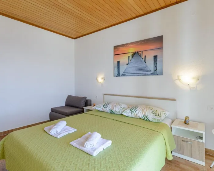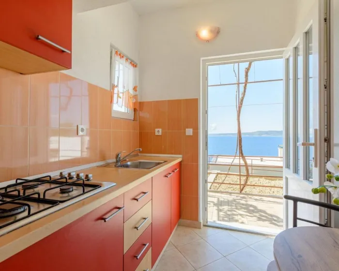 Ova soba sa terasom i pogledom na more ima dobro opremljenu kuhinju sa mikrotalasnom pećnicom, frižiderom i šporetom, kao i 1 kupatilo sa tušem i fenom za kosu. Smještaj je za nepušače.
