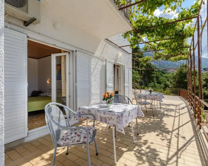 Apartmani Relax Brela - Studio nude smeštaj sa terasom i pogledom na more, na oko 300 metara udaljenosti od plaže Berulia.