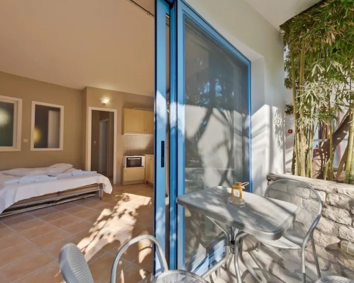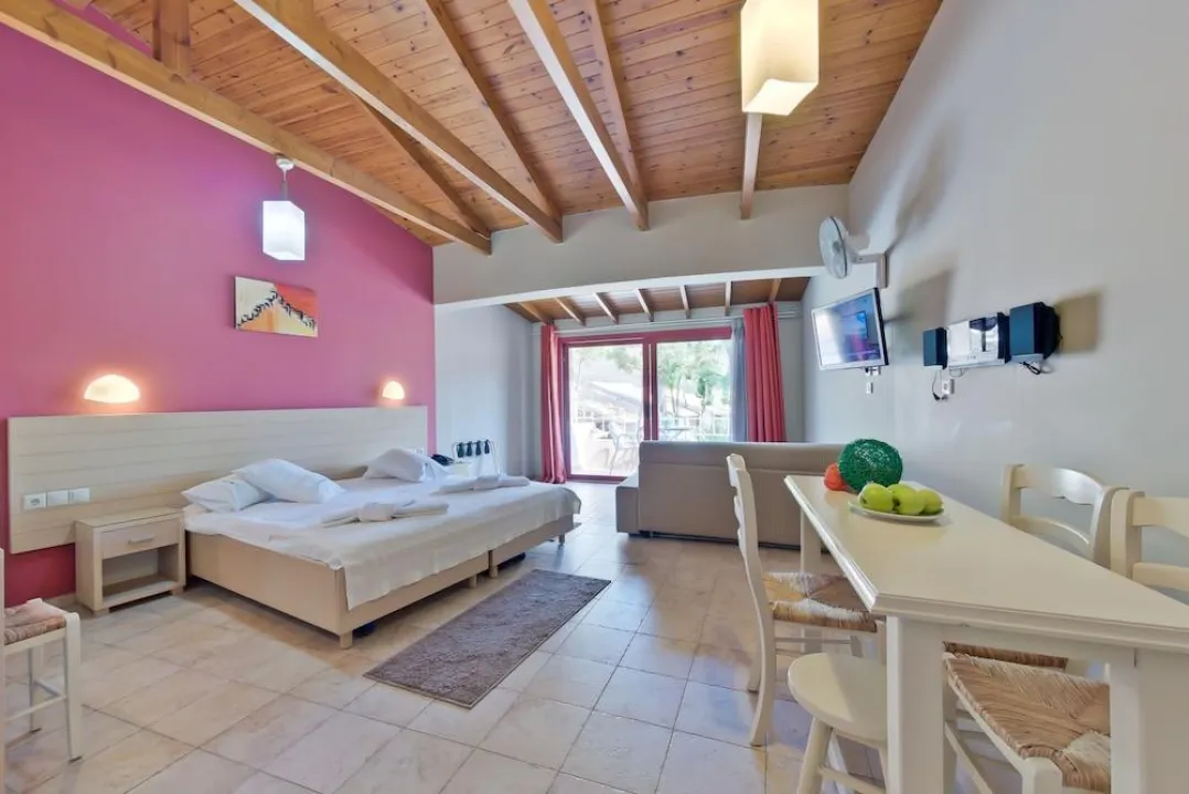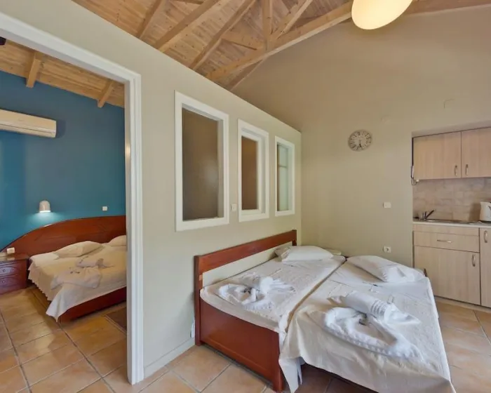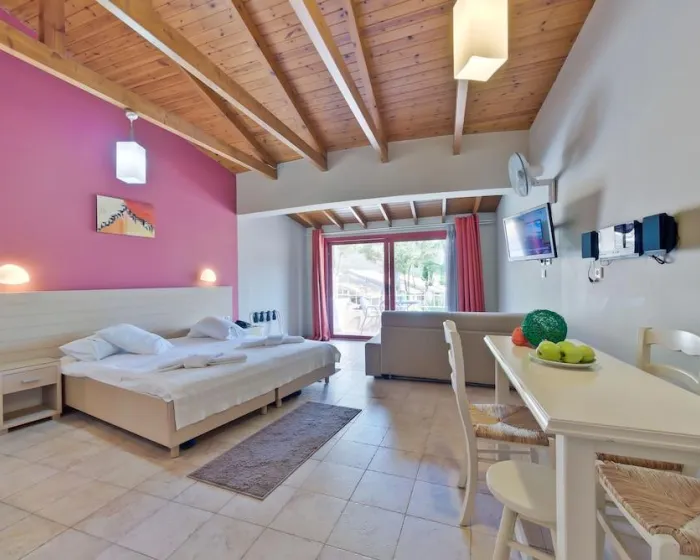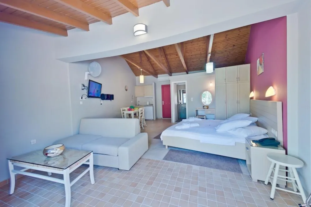 Klima uređaj i centralno grejanje osiguravaju prijatne temperature u sobama. Gosti mogu da se opuste i uživaju u pogledu na more sa balkona ili privatne terase nekih soba. Sobe imaju bračni krevet, krevet queen size ili sofu. Dostupne su i odvojene spavaće sobe. Dodatni kreveti mogu biti zatraženi. Sef pruža sigurno čuvanje lične imovine gostiju. Kuhinja dolazi sa frižiderom. Telefonom, TV-om i WiFi-jem (bez dodatne naplate) su takođe obezbeđeni. Kupatila su opremljena tušem i kadom, kao i fenom za kosu. Gosti takođe mogu rezervisati sobe prilagođene osobama u invalidskim kolica sa pristupačnim kupatilom. Hotel ima porodične sobe i sobe za nepušače.