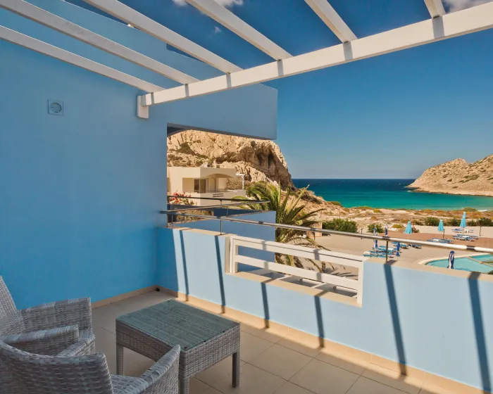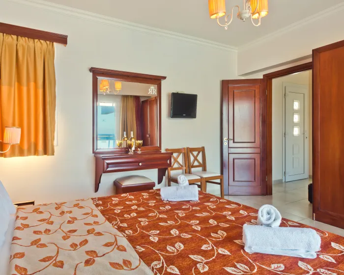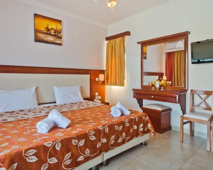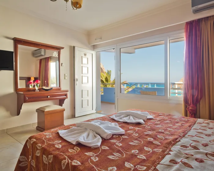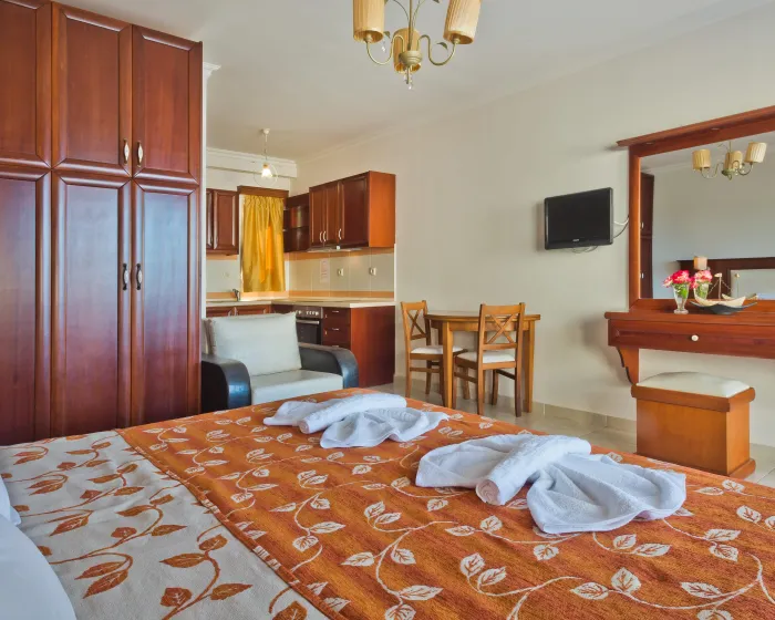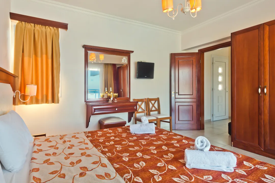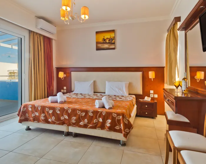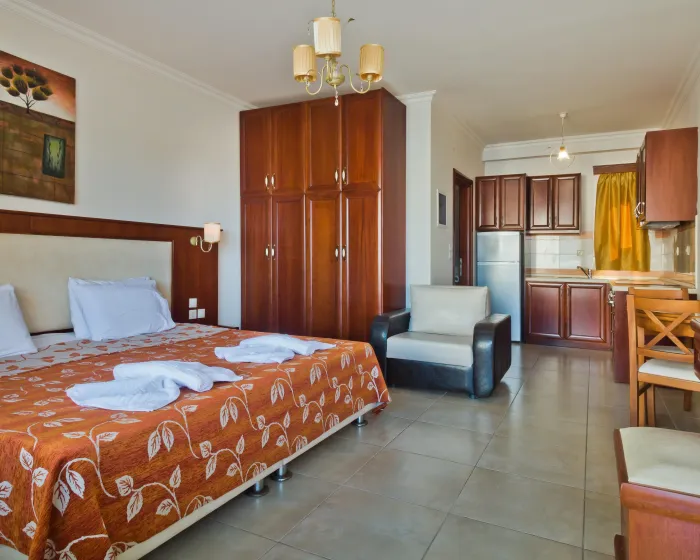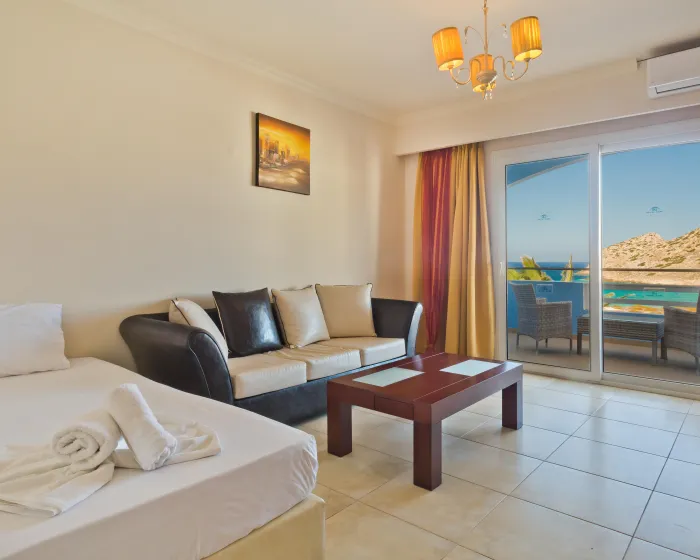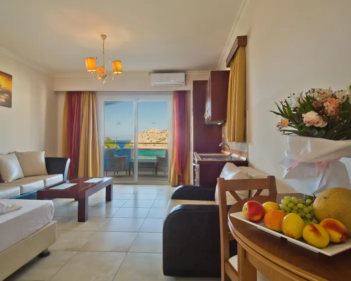 Klima uređaj i podesivo centralno grejanje osiguravaju da sobe održavaju udobnu temperaturu. U većini jedinica, gosti mogu uživati u pogledu na more sa balkona ili terase. Sobe imaju bračni krevet i sofu na razvlačenje. Dostupne su i odvojene spavaće sobe. Kreveti za decu mogu se zatražiti za mlađe goste. Sef i mini bar su takođe dostupni. Kuhinja dolazi sa frižiderom, šporetom i aparatom za kafu/čaj. Opremljene direktnim telefonom, TV-om, radijem i WiFi konekcijom (bez dodatne naknade), sobe pružaju mnogo načina da gosti ostanu povezani i zabavljaju se. Fen za kosu i ogledalo za šminkanje su dostupni u kupatilima, koja su opremljena tuš kabinom i kadom. Kao posebna mogućnost, kupatila su opremljena kozmetičkim proizvodima i izborom peškira. Gosti mogu takođe rezervisati sobe prilagođene za invalide sa kupatilima prilagođenim za invalidska kolica. Hotel ima porodične sobe i 42 sobe za nepušače.