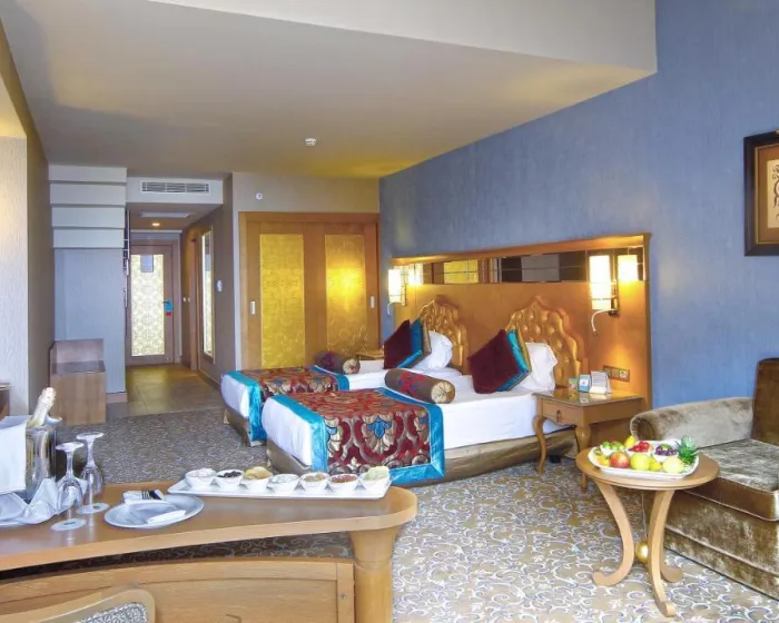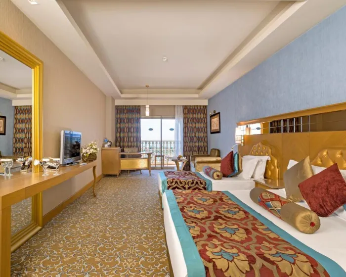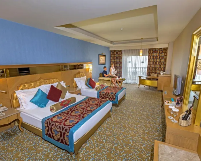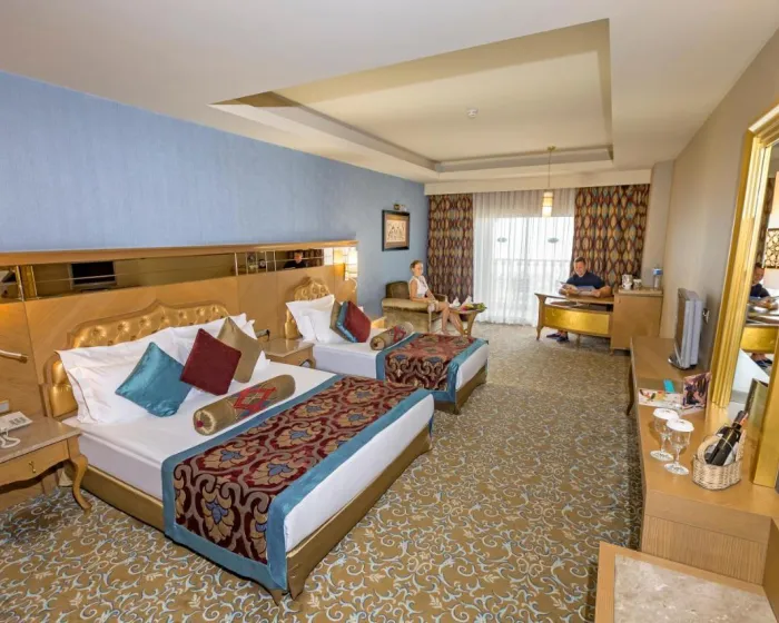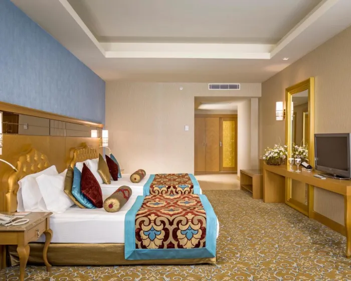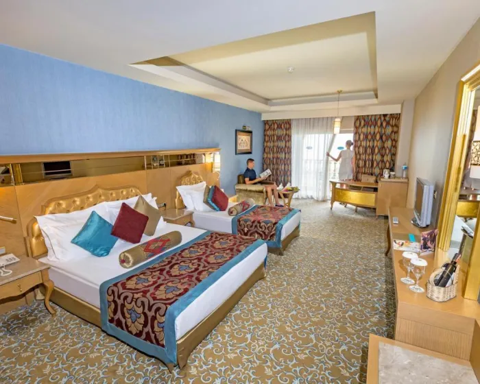 Klimatizacija obezbeđuje da sobe održe pravu temperaturu. Gosti mogu uživati u pogledu na vrt sa balkona ili terase. Sve sobe su popločane i uključuju bračni krevet. Za mlade putnike, moguće su dečije postelje. Takođe su dostupni sef, minibar i radni sto. Gosti će pronaći i prostor za čaj/kafu među standardnim sadržajima. Direktno biranje telefona, satelitska televizija i WiFi (bez dodatne naplate) pružaju sve neophodno za udoban odmor. Izbor jastuka garantuje udoban boravak. Fen za kosu, bade mantili i telefon su na raspolaganju u kupatilima za svakodnevnu upotrebu. Za dodatnu udobnost u kupatilima, gostima su ponuđeni kozmetički proizvodi. Može se rezervisati 6 soba prilagođenih za invalidska kolica. Dostupno je 103 porodičnih soba za roditelje sa decom.