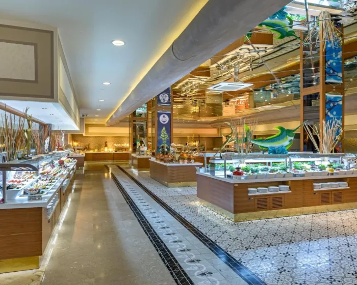 Objekti za obedovanje uključuju 10 restorana, kafić, bar, lobi bar i bar sa klavirom. Osvežavajući napici u baru na plaži su savršen način da uživate u toplom vremenu. Može se rezervisati specijalni all-inclusive paket. Doručak za rane ptice i kasne spavače, ručak i večera mame goste sa širokim izborom jela. Osoblje takođe rado pruža dečije obroke. Pored toga, dostupni su specijalni catering opcije i zakuske. Kuvanje pred gostima je posebna atrakcija. Za goste, alkoholna i bezalkoholna pića su uključena.
