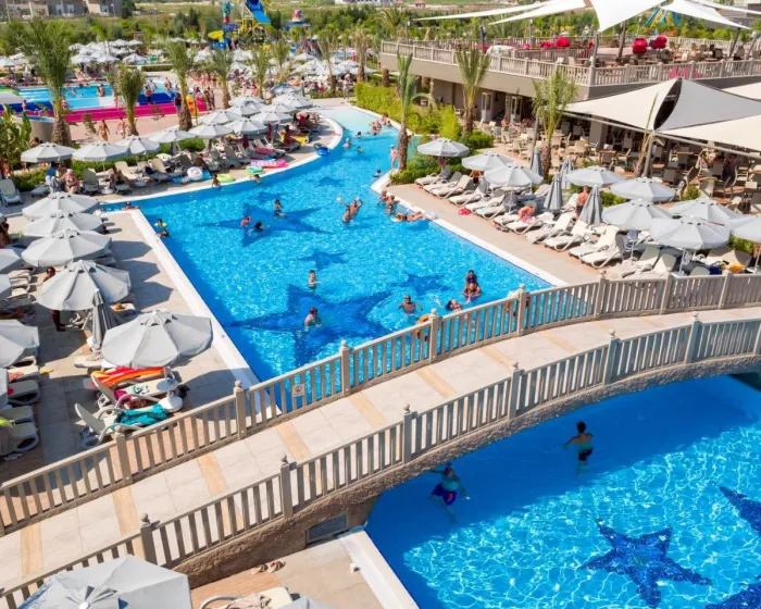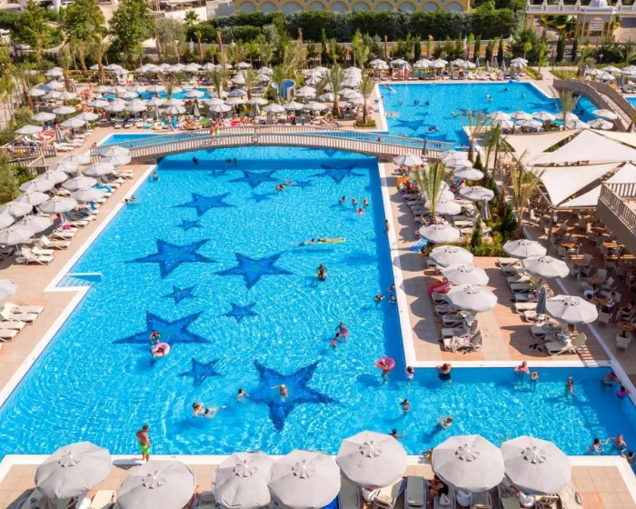 Prostrano područje bazena, koje uključuje 4 otvorena bazena, sjajno je mjesto za goste da se opuste i osvježe se kupanjem. Čak i u hladnijim danima, plivanje je uvijek opcija kod unutrašnjeg bazena. DJeca mogu da se kupaju u jednom od 3 dječija bazena. Čisto opuštanje u đakuziju (bez dodatne naknade), zabava na toboganu i osvježavajuće piće u baru pored bazena - gosti će doživeti koliko bogat i raznovrstan može biti dan proveden na vodi. Na raspolaganju je terasa sa ležaljkama i suncobranima. Za goste koji žele da ostanu aktivni, na raspolaganju su tenis, bocce i odbojka na plaži. Hotel nudi brojne unutrašnje sportske aktivnosti, uključujući teretanu, stoni tenis, pikado, kalisteničke vježbe i aerobik ili, uz naknadu, bilijar. Postoji zona za relaksaciju sa spa centrom, saunom, parnom kupkom i hamamom i, uz dodatnu naknadu, spa i tretmani masaže. Dečji klub, dečji disko, živa muzika i plesni klub su dio ponude za razonodu. Autorstvo GIATA 2004 - 2025. Višejezično, napaja www.giata.com za klijenta br. 124971