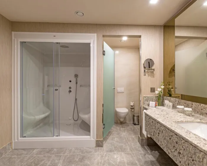 Klima uređaj osigurava da sobe zadrže pravilnu temperaturu. Gosti mogu uživati u pogledu na grad sa balkona ili terase. Za mlade putnike, mogu se obezbijediti dječiji krevetići. Takođe su dostupni sef i minibar. Gosti će takođe pronaći stanicu za čaj/kafu među standardnim karakteristikama. Ostale karakteristike uključuju direktni telefonski poziv, satelitsku televiziju i WiFi (bez dodatne naknade). Izbor jastuka osigurava udoban san. Fen za kosu i telefon su dostupni u kupatilima za svakodnevnu upotrebu. Kao posebna karakteristika, kupatila su takođe opremljena kozmetičkim proizvodima i izborom peškira. Može se rezervisati 8 soba prilagođenih za invalide. Na raspolaganju su 135 porodičnih soba za roditelje sa djecom.