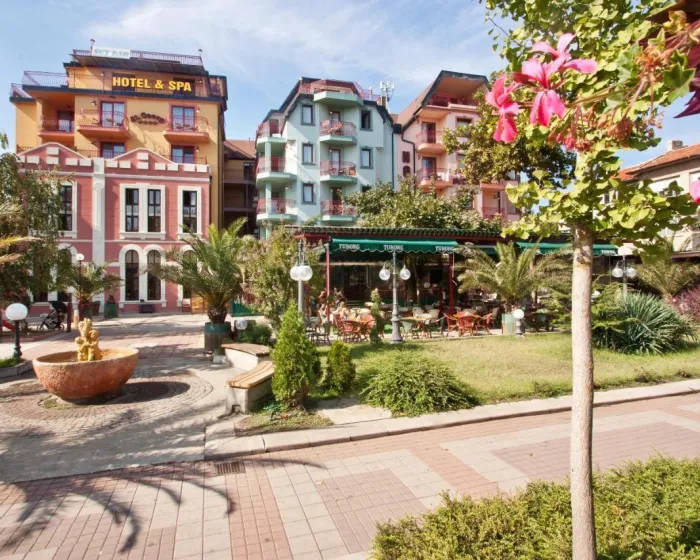 Spa kompleks se nalazi u starom delu Pomorija. Na jednoj strani graniči sa obalnim bulevarom, a na drugoj pešačkim centrom grada. Aerodrom Burgas je udaljen oko 18 km, a aerodrom Varna oko 100 km.