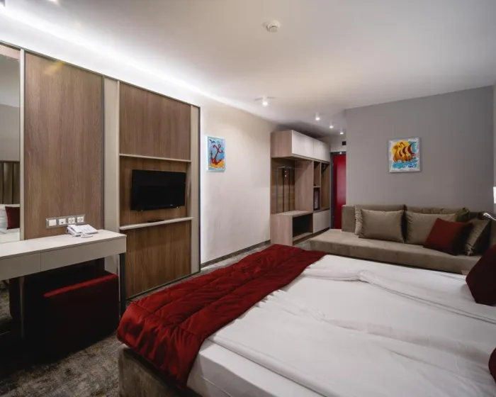 Sobe su opremljene klima uređajem i centralnim grejanjem. Gosti mogu opušteno uživati u pogledu na more sa balkona ili privatne terase nekih soba. Sobe imaju bračni krevet i sofu. Mogu se zatražiti dodatni kreveti. Takođe su dostupni sef i mini bar. Dodatne funkcije uključuju mini frižider i čaj/kafu. Tu su i direktno biranje telefona, televizor sa satelitskim/kablovskim kanalima i WiFi (bez dodatne naknade). Kupatila su opremljena tušem i kadom, kao i fenom za kosu. Gosti takođe mogu rezervisati sobe prilagođene za osobe sa invaliditetom sa pristupačnim kupatilima. Hotel ima porodične sobe i sobe za nepušače.