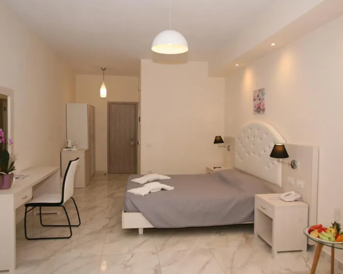 Klima uređaj i centralno grejanje osiguravaju da sobe održavaju udobne temperature. Gosti mogu uživati u pogledu na more sa balkona ili terase. Sobe imaju bračni krevet ili kauč na razvlačenje. Dostupne su odvojene spavaće sobe. Kreveti za decu i dodatni kreveti mogu se zatražiti za mlađe goste. Sef pruža sigurno čuvanje lične imovine gostiju. Radi praktičnosti gostiju, jedinice uključuju mini frižider i aparat za kafu/čaj. Ostale mogućnosti uključuju telefon, satelitsku televiziju i WiFi (bez dodatne naplate). Fen za kosu i bade mantili dostupni su u kupatilima, koja su opremljena tušem. Kompleks ima porodične sobe i sobe za nepušače.