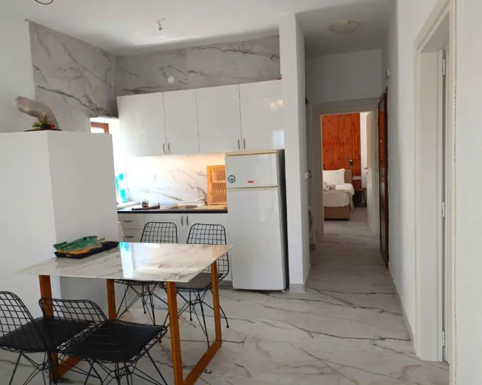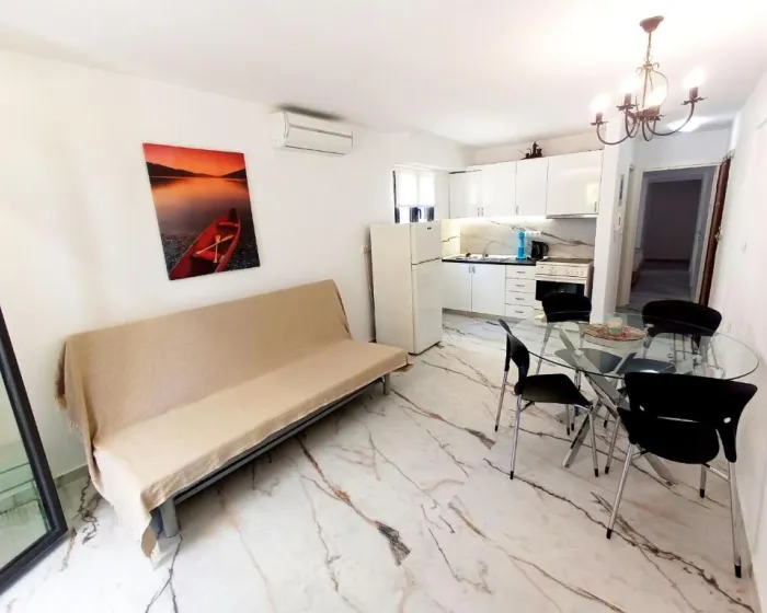 Apartman dvokrevetna soba, dnevni boravak sa krevetom na razvlačenje i kuhinjom.