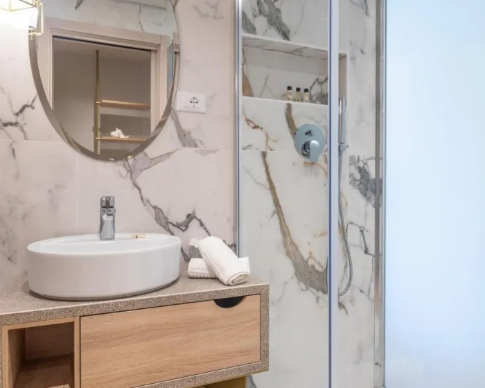 Klima uređaj i centralno grejanje osiguravaju udobne temperature u sobama. Gosti mogu da se opuste i uživaju u pogledu na more sa balkona ili privatne terase pojedinih soba. Sobe imaju bračni ili francuski ležaj. Kreveti za decu i dodatni kreveti mogu se zatražiti za mlađe goste. Na raspolaganju su sef, minibar i radni sto. Za praktičnost gostiju, jedinice uključuju frižider i mini frižider. Telefon, TV, radio i WiFi (bez dodatne naknade) pružaju sve neophodno za udoban odmor. Kupatila uključuju fen za kosu i opremljena su tušem i kadom. Za dodatnu udobnost u kupatilima, gostima se nude kozmetički proizvodi. Mogu se rezervisati sobe prilagođene za invalidska kolica. Hotel ima porodične sobe i sobe za nepušače.