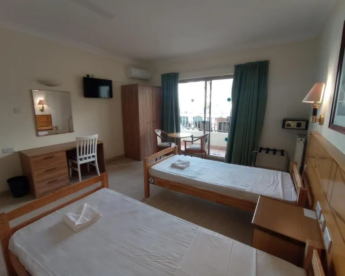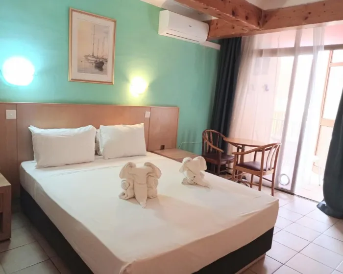 Sobe su opremljene klima uređajem, grejanjem i ventilatorom kako bi boravak bio prijatan tokom cele godine. Većina soba ima balkon ili terasu. U sobama se nalazi sofa na razvlačenje, a dodatni ležajevi su dostupni na zahtev. Gostima je na raspolaganju sef za čuvanje ličnih stvari. Kuhinjski deo opremljen je mikrotalasnom pećnicom i priborom za pripremu kafe i čaja. Dodatna oprema uključuje telefon, televizor i WiFi. Kupatila su opremljena tušem i kadom, fenom za kosu, kao i kozmetičkim proizvodima i izborom peškira. Hotel raspolaže porodičnim sobama i sobama za nepušače.