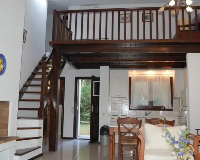 Vila A (70 m²) - dve spavaće sobe (jedna se nalazi u potkrovlju), dnevna soba sa opremljenom kuhinjom (frižider, toster, aparat za kafu Nespresso, kuvalo za vodu, mikrotalasna, električna rerna), kamin, 2 klime, SAT TV, telefon, Wi-Fi internet, tuš/toalet, pegla, usisivač, fen, šampon i sapun.Vila B (110 m²) - sa zajedničkim bazenom za 10 vila (na 50 m). Tri spavaće sobe (jedna u potkrovlju), dnevni boravak sa opremljenom kuhinjom (frižider, toster, aparat za kafu Nespresso, kuvalo za vodu, mikrotalasna, el. rerna), kamin, 2 klime, SAT TV, Wi-Fi internet, 2 kupatila (kada/toalet i tuš/toalet), pegla, fen, šampon i sapun.Vila C (150 m²) - 350 m od mora. 4 spavaće sobe, 3 kupatila sa tušem, zajednički bazen za 10 vila. U prizemlju - spavaća soba sa 2 odvojena kreveta, opremljena kuhinja (frižider, toster, aparat za kafu, kuvalo za vodu, mikrotalasna, el. rerna), dnevni boravak, trpezarija, SAT TV, telefon, Wi-Fi internet, kupatilo (opremljen za osobe sa invaliditetom). Na gornjem spratu - spavaća soba sa 2 odvojena kreveta, druga spavaća sa bračnim krevetom, kupatilo sa tušem. U podrumu - spavaća sa bračnim krevetom, kupatilo. Izmedju spratova unutrašnje stepenište. Klima uredjaj u 3 spavaće sobe i dnevnom boravku.