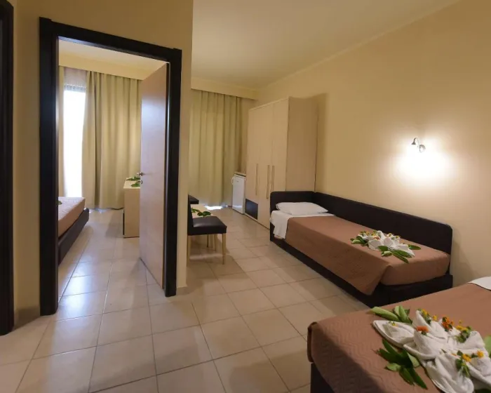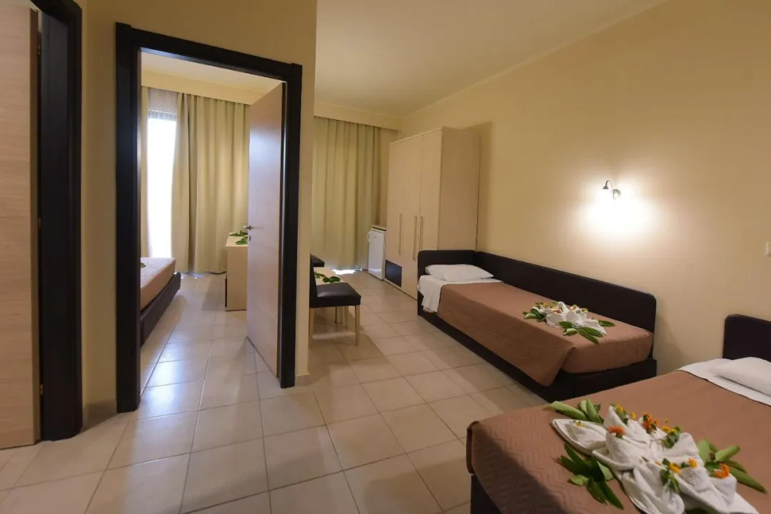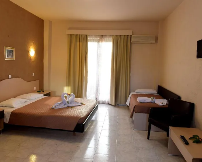 Klima uređaj i centralno grejanje osiguravaju da sobe održe udobne temperature. Gosti mogu uživati u pogledu na vrt sa balkona ili terase. Sobe imaju bračni krevet ili sofu. Dodatni kreveti mogu biti zatraženi. Sef i radni sto su takođe dostupni. Dodatni sadržaji uključuju frižider i prostor za čaj/kafu. Telefon, TV i WiFi (bez dodatne naplate) pružaju sve neophodno za udoban odmor. Kupatila su opremljena tušem i kadom, kao i fenom za kosu. Hotel ima porodične sobe i sobe za nepušače.