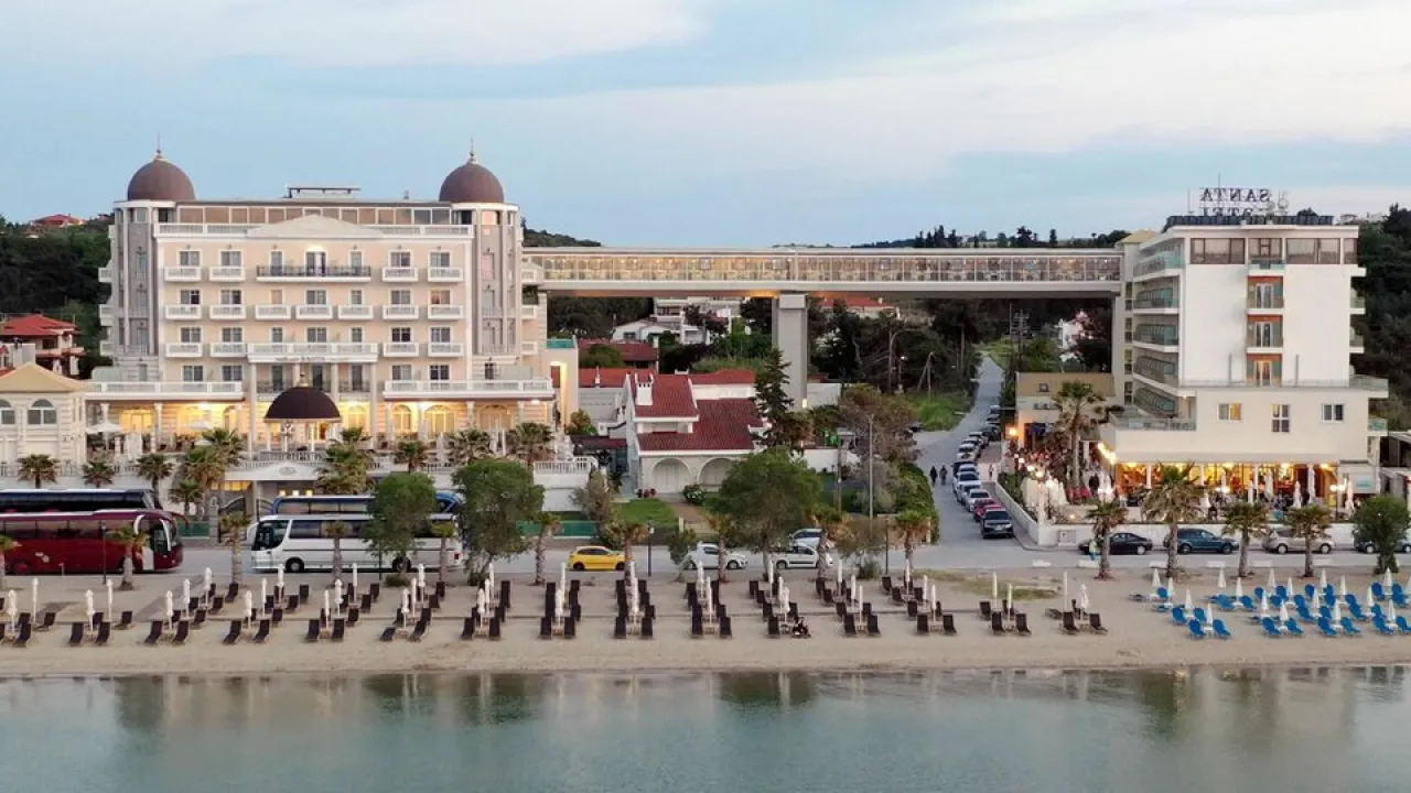 Hotel Santa Wellness Resort se nalazi u mestu Agia Triada, na peščanoj plaži, na oko 19 km od centra Soluna i približno 9 km od aerodroma. Namenjen je isključivo odraslima (12+), a kombinuje eleganciju, udobnost i opuštanje u modernom ambijentu.