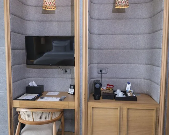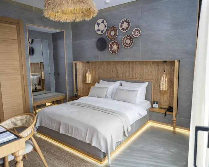 Sobe uključuju klima uređaj, centralno grejanje i ventilator. Gosti mogu uživati u pogledu na more sa balkona ili terase. Sobe imaju bračni krevet i sofu na razvlačenje. Takođe su dostupni sef, minibar i radni sto. Dodatne pogodnosti uključuju frižider i aparat za kafu/čaj. Pegla je obezbeđena radi gostima u dohvatu ruke. Takođe su obezbeđeni telefon, televizor sa satelitskim/kablovskim kanalima, radio, adapter za utikače, alarmni sat i WiFi (bez dodatne naknade). Papuče su uključene. Fen za kosu i bade mantili su dostupni u kupatilima, koja su opremljena tušem. Kozmetički proizvodi i izbor peškira pružaju dodatnu udobnost u kupatilima. Hotel ima porodične sobe i sobe za nepušače.