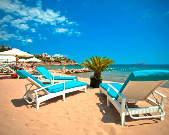 Prostrani apartman opremljen je sa 2 spavaće sobe, 1 kupatilo, posteljina, peškiri, flat-screen TV sa kablovskim kanalima, trpezarijski prostor, potpuno opremljena kuhinja i terasa sa pogledom na more. Gosti mogu uživati u pogledu na bazen sa balkona, koji takođe ima baštenski nameštaj. Za dodatnu privatnost, smeštaj ima privatni ulaz i obezbeđen je celodnevnim obezbeđenjem.