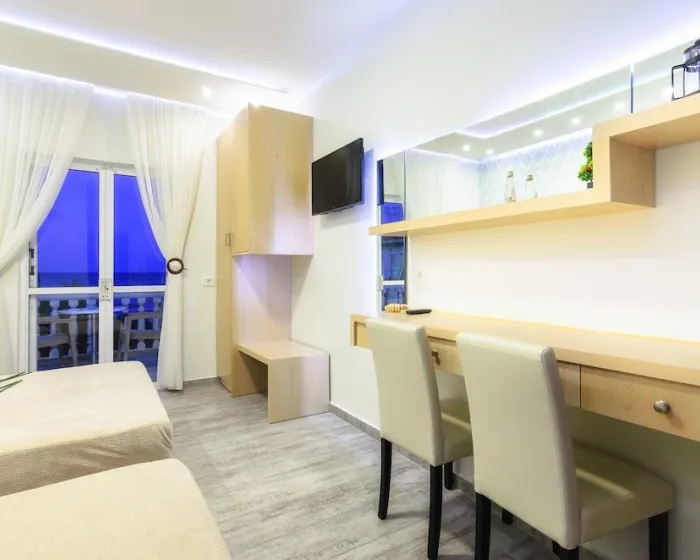 Klima uređaj osigurava da sobe održavaju udobnu temperaturu. Gosti mogu uživati u pogledu na more sa balkona ili terase. Sobe uključuju bračni krevet. Sef i mini bar su takođe dostupni. Gosti će takođe pronaći frižider među standardnim sadržajima. Opremljene televizorom i WiFi-jem, sobe pružaju mnoge načine na koje gosti mogu ostati povezani i zabavljati se. Kupatila su opremljena tušem i uključuju fen za kosu. Za dodatnu udobnost u kupatilima, gostima su ponuđeni peškiri. Hotel ima porodične sobe i sobe za nepušače.