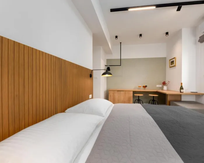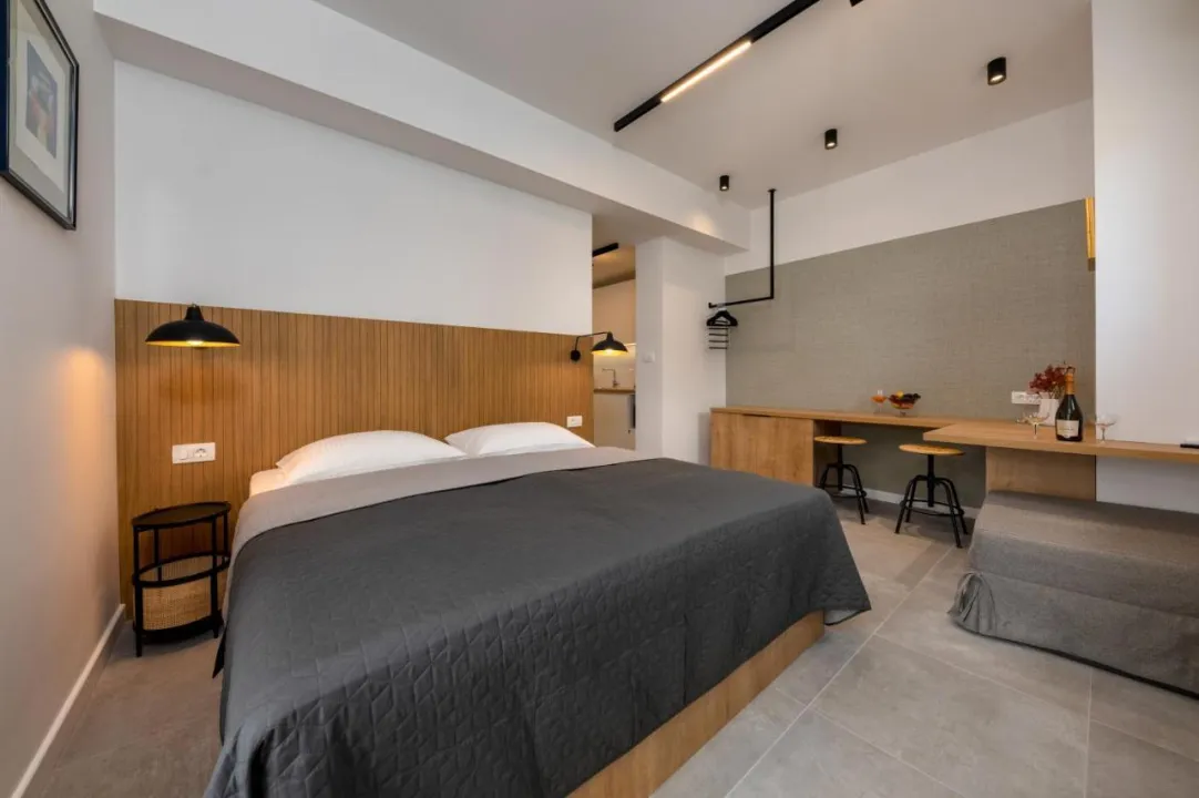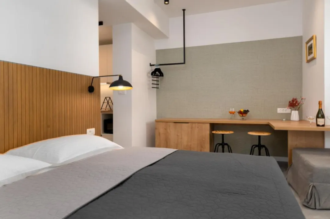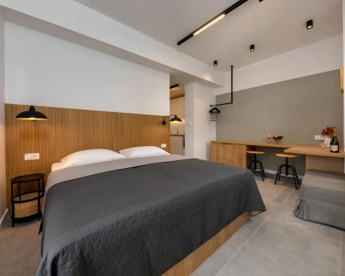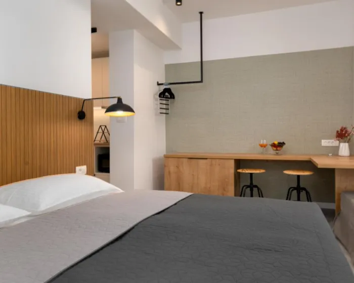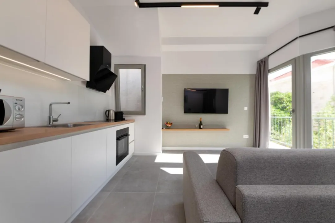 Svaka jedinica ima balkon sa pogledom na more, satelitsku ravnu TV, dobro opremljenu kuhinju i privatno kupatilo sa tušem i fenom za kosu. Mikrotalasna rerna, frižider i šporet su takođe dostupni, kao i aparat za kafu i čajnik. U kompleksu apartmana, svaka jedinica je opremljena posteljinom i peškirima.