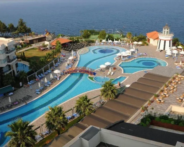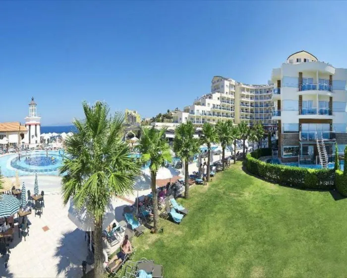 Nalazi se blizu Ladies plaže na uzvišenom mestu iznad obale, porodični hotel na plaži uživa u spektakularnom pogledu na Egejsko more sa grčkim ostrvom Samos na horizontu. U blizini centra letovališta, hotel se nalazi na mirnoj lokaciji sa obližnjim borovim šumama. Bilo da ste zainteresovani za umetnost, istoriju i arheologiju ili ljubitelj prirode, uživaćete istražujući sela ili ronjenju u različitim regionima. Gostima je na raspolaganju javni prevoz na samo 100 m udaljenosti, a prodavnje, barovi, noćni život i autobuska stanica u centru grada Kušadası, koji je udaljen oko 3 km od klupskog odmarališta. Aerodrom Adnan Menderes udaljen je oko 75 km od konferencijskog hotela.