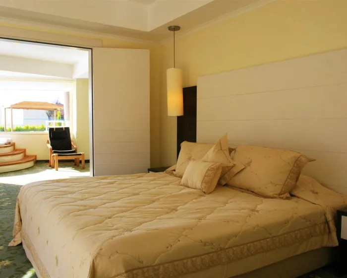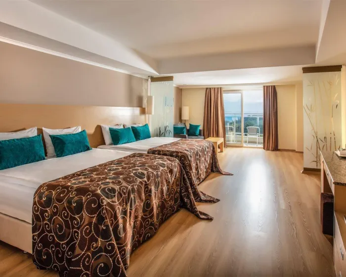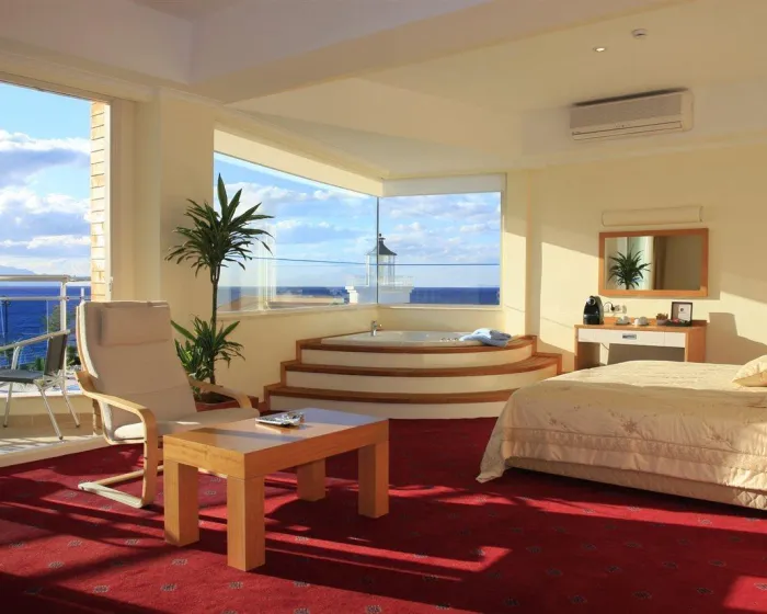 Klima uređaj i individualno podešavanje grejanja osiguravaju da sobe održavaju udobnu temperaturu. Gosti mogu uživati u pogledu na more sa balkona ili terase. Sve sobe su popločane i uključuju bračni krevet i kauč na rasklapanje. Kreveti za decu i dodatni kreveti mogu se zatražiti za mlađe goste. Takođe su dostupni sef i minibar. Dodatne pogodnosti uključuju frižider, mini bar i čajnu kuhinju. Direktno biranje telefonom, televizor sa satelitskim / kablovskim kanalima i WiFi pružaju sve neophodno za udoban odmor. Kupatila su opremljena tušem, kadom i đakuzijem. Fen za kosu i ogledalo za šminkanje dostupni su za svakodnevnu upotrebu. Gosti mogu takođe rezervisati sobe prilagođene invalidskim kolicima sa pristupačnim kupatilima. Kompleks ima sobe za pušenje.