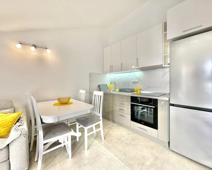 Apartmani Na Obali Zlokovica se nalaze u Bijeloj, na deset minuta vožnje od Kotorskog zaliva i marine Portonovi. Ovaj apartman je udaljen 8 km od Porto Montenegra i 7 km od Svetog Roka.