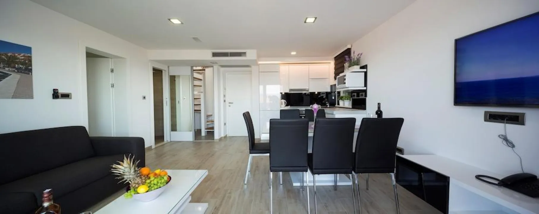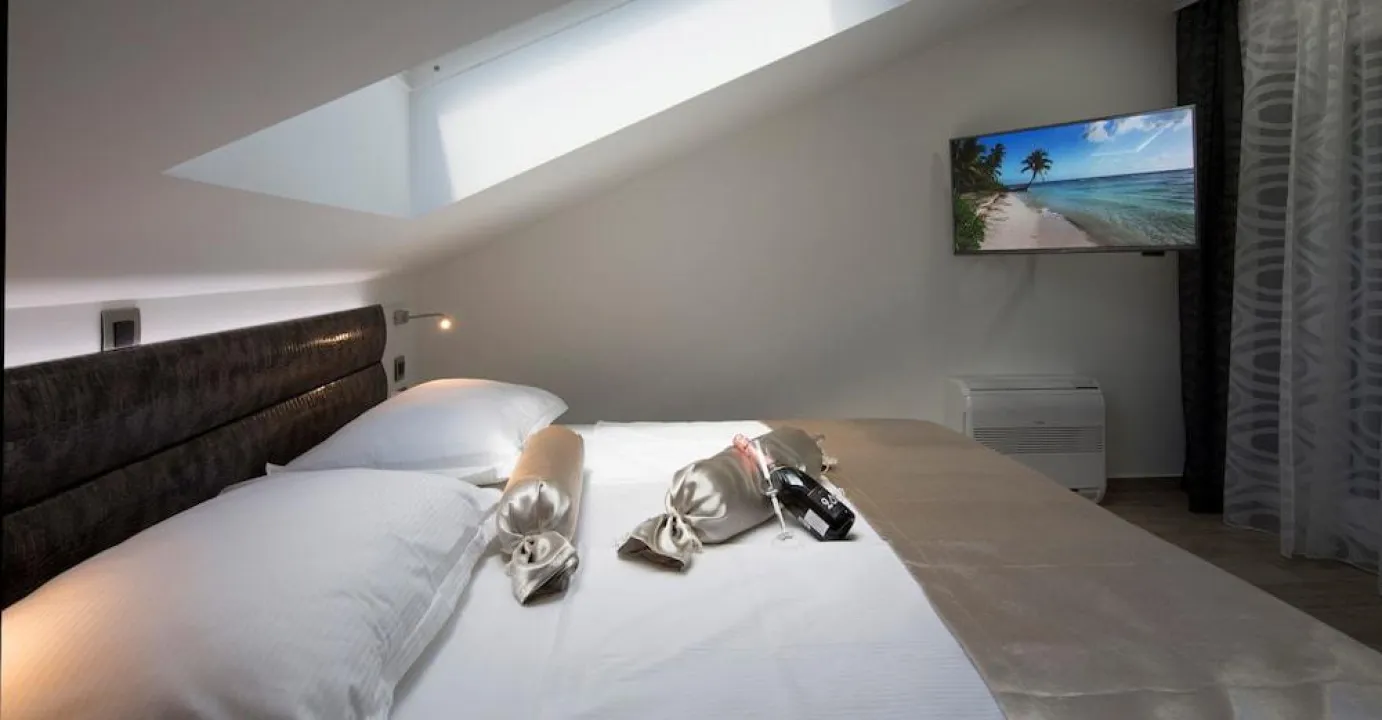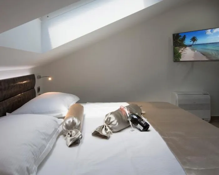 Sobe su opremljene klima uređajem i centralnim grejanjem. Gosti mogu uživati u pogledu na more sa balkona ili terase. Sve sobe su sa tepihom i sadrže bračni krevet i sofu na razvlačenje. Dodatni kreveti se mogu zatražiti. Na raspolaganju su i sef i radni sto. Dodatni sadržaji uključuju frižider, mikrotalasnu pećnicu, aparat za čaj/kafu i mašinu za pranje sudova. Tu je takođe i veš mašina i mašina za sušenje veša. Telefon, televizor sa satelitskim/kablovskim kanalima, radio i WiFi (bez dodatnih troškova) obezbeđuju optimalnu udobnost. Kupatila su opremljena tušem i fenom za kosu. Kao posebna pogodnost, kupatila sadrže kozmetičke proizvode i izbor peškira. Smeštaj nudi porodične sobe i sobe za nepušače.
