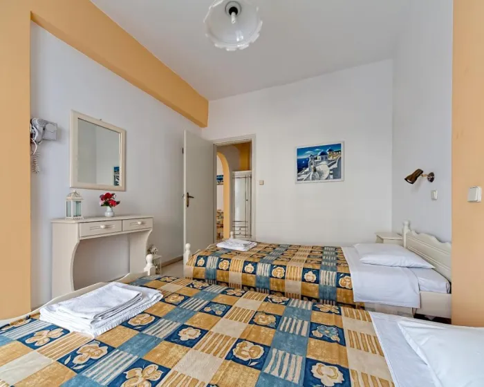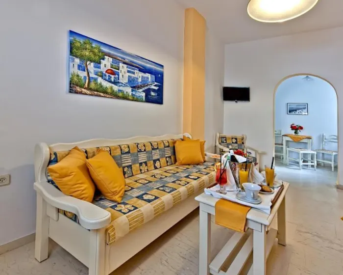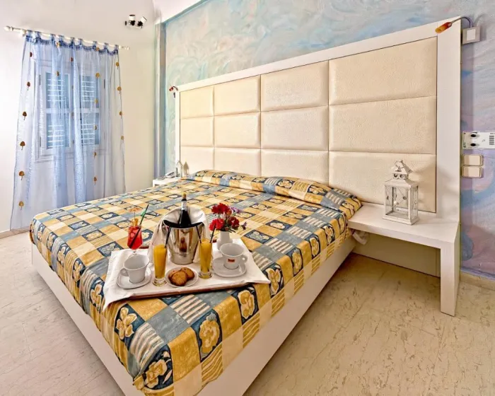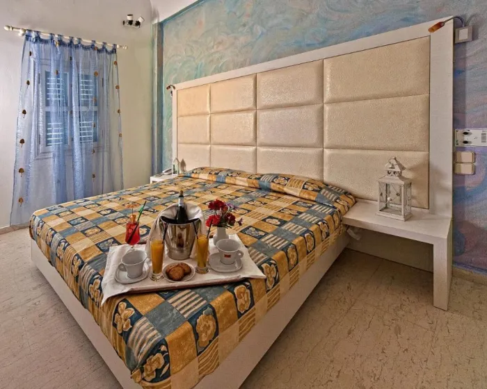Klima uređaj, centralno grejanje i ventilator osiguravaju da sobe održavaju udobne temperature. Gosti mogu uživati u pogledu na more sa balkona ili terase. Sobe imaju bračni krevet i sofu. Dostupne su odvojene spavaće sobe. Kreveti za decu i dodatni kreveti mogu se zatražiti za mlađe goste. Sef i minibar su takođe dostupni. Kuhinja dolazi sa frižiderom, mini frižiderom i aparatom za kafu/čaj. Telefon, TV i WiFi (bez dodatne naplate) pružaju sve osnovne potrebno za udoban odmor. Kupatila su opremljena tušem i kadom, kao i fenom za kosu. Hotel ima porodične sobe i sobe za nepušače.
