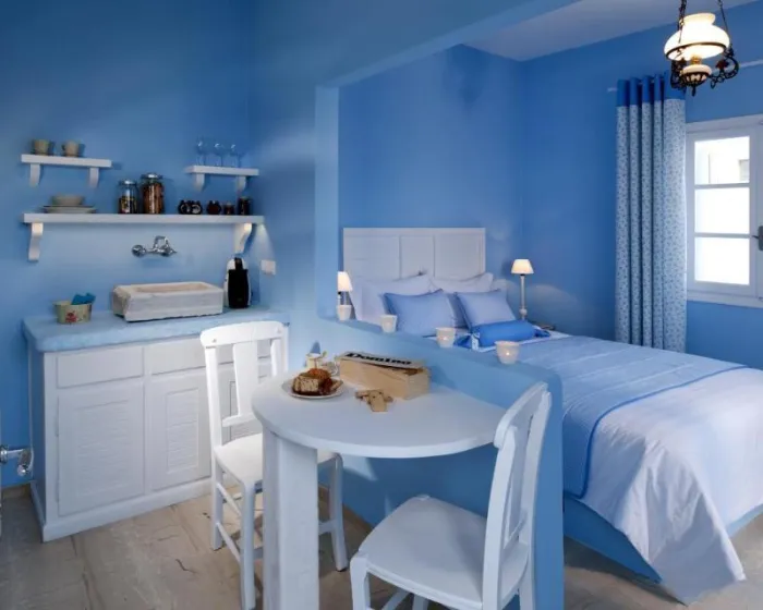 Klima uređaj i centralno grejanje osiguravaju da sobe održavaju udobne temperature. U većini jedinica, gosti mogu uživati u pogledu na more sa balkona ili terase. Sobe imaju bračni krevet i sofu na razvlačenje. Dodatni kreveti mogu biti zatraženi. Takođe su dostupni sef i radni sto. Dodatni sadržaji uključuju frižider i aparat za kafu/čaj. Set za peglanje je obezbeđen radi gosti'jskog kominitetna. Direktni telefonski broj, televizor sa satelitskim/kablovskim kanalima i WiFi (bez dodatnih troškova) takođe su obezbeđeni. Papuče su uključene. Kupatila su opremljena tušem, kadom i hidromasažnom kadom. Fen za kosu i bade mantili su dostupni za svakodnevnu upotrebu. Za dodatnu udobnost u kupatilima, gostima su ponuđeni kozmetički proizvodi. Hotel ima porodične sobe i sobe za nepušače.