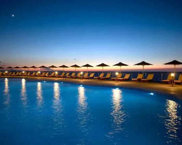 Sensimar Royal Blue Resort and Spa Panormos je smešten je na samoj plaži, na oko 4 kilometara udaljenosti od mesta Panormo i na 22 kilometra od Retimna. Medjunarodni aerodrom Nikos Kazantzakis u Heraklionu udaljen je oko 55 kilometara od hotela.