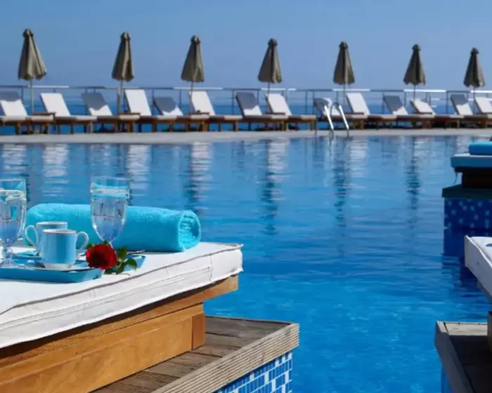 recepcija, wifi internet, room service, lounge bar, koktel bar, vinski bar, glavni restoran, tri restorana a la carte, otvoreni bazen, otvoreni bazen sa morskom vodom, ležaljke i suncobrani pored bazena, bar pored bazena, bar na plaži, ležaljke i suncobrani na plaži, peškiri za plažu, dečiji bazen, dečiji klub, dečiji meni, igralište za decu, SPA centar (hamam, kozmetički tretmani za negu lica i tela, masaža, fitnes centar, hidroterapija), teretana na otvorenom, tursko kupatilo, sauna, prodavnica, lekar na poziv), sale za konferencije, frizer, dadilja, košarka, pikado, tenis, vaterpolo, tematske zabave dva puta nedeljo, animacija, zabave na plaži, parking