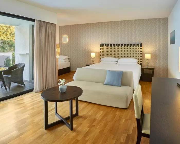 Sobe su opremljene klima uređajem i individualno podebljivim grejanjem. Gosti mogu odmarati na balkonu ili terasi. Dragocenosti se mogu bezbedno čuvati u sefu. Mini frižider i čaj/kafa stanica su standardne funkcije. Direktni telefonski poziv, televizor sa ravnim ekranom i satelitskim kanalima i WiFi (bez dodatne naplate) su takođe obezbeđeni. Kupatila su opremljena tušem i hidromasažnom kadom. Fen, šminkersko ogledalo i bade mantili su dostupni za svakodnevnu upotrebu. Za dodatnu udobnost u kupatilima, gostima su na raspolaganju kozmetički proizvodi. Gosti takođe mogu rezervisati sobe prilagođene za invalide sa pristupačnim kupatilima. U kompleksu postoje porodične sobe i sobe za pušače.