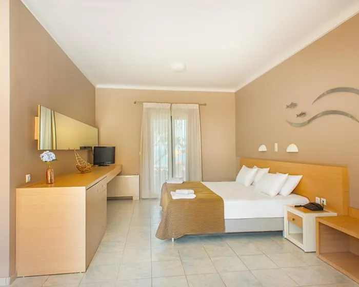 Sobe su opremljene klima uređajem i centralnim grejanjem. Gosti mogu opušteno uživati u pogledu na more sa balkona ili privatne terase nekih soba. Sobe imaju king size krevet i sofu na razvlačenje. Dodatni ležajevi se mogu tražiti. Takođe su dostupni sef i minibar. Kuhinja dolazi sa frižiderom, mikrotalasnom pećnicom i aparatom za kafu/čaj. Pegla je obezbeđena radi gostiju. Direktni telefonski poziv, televizor sa satelitskim/kablovskim kanalima, radio i WiFi (bez dodatne naknade) takođe su obezbeđeni. Fen za kosu i telefon dostupni su u kupatilima, koja uključuju tuš kabinu i kadu. Kozmetički proizvodi i izbor peškira dodatno pružaju udobnost u kupatilima. Hotel ima porodične sobe i 51 sobu za nepušače.