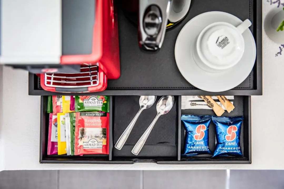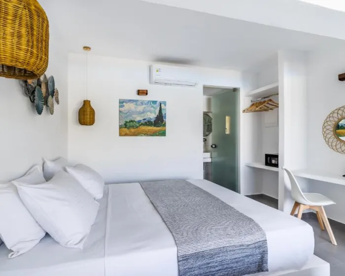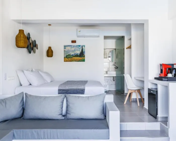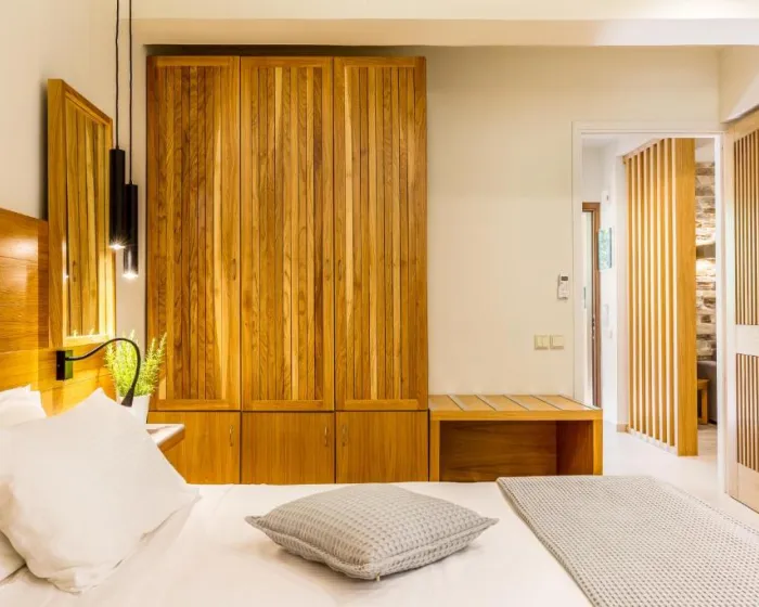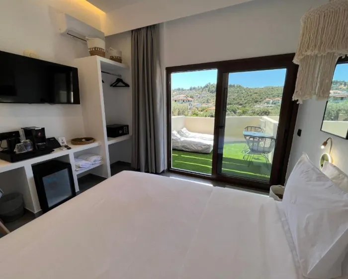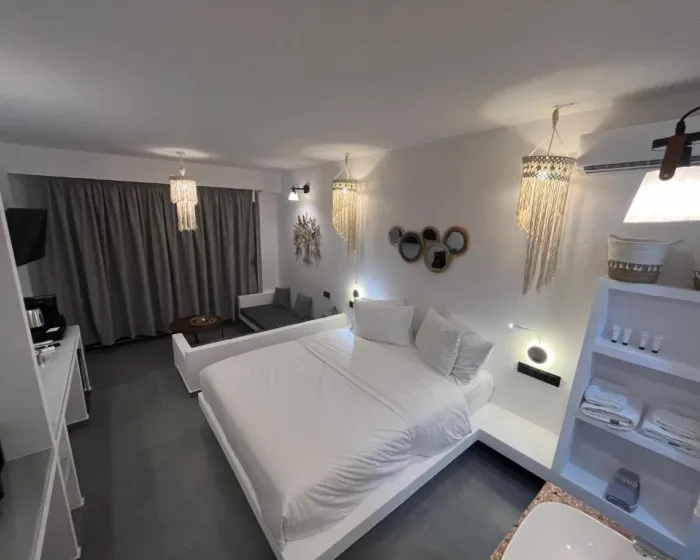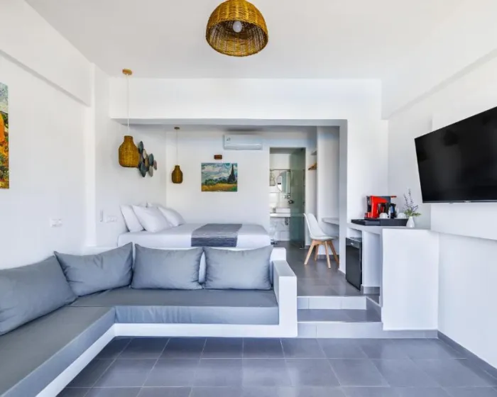Klima uređaj i air conditioning osiguravaju da sobe održavaju udobne temperature. Gosti mogu opuštajući se i uživati u pogledu na more sa balkona ili privatne terase nekih soba. U sobama se nalazi bračni krevet, krevet queen size, krevet king size ili sofa na razvlačenje. Dostupne su odvojene spavaće sobe. Dodatni kreveti mogu se zatražiti. Na raspolaganju su sef i mini bar. Kuhinjica dolazi sa frižiderom i mesto za pripremu čaja i kafe. Telefon, TV i WiFi (bez dodatne naknade) pružaju sve što je potrebno za udoban odmor. Papuče su uključene. Fen za kosu i bade mantili su dostupni u kupatilima, koja su opremljena tuš kabinom i kadom. Radi dodatne udobnosti u kupatilima, gostima su ponuđeni kozmetički proizvodi. Hotel ima porodične sobe i sobe za nepušače.