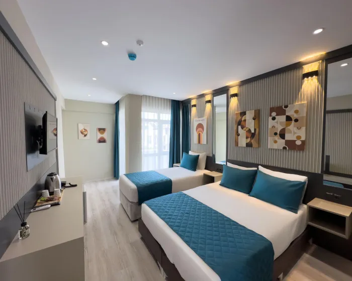 Naš hotel, koji kombinuje moderni dizajn sa čistim, ali impresivnim estetskim, ima ukupno 20 soba. Dok naše Deluxe sobe - prostrane i pružaju dodatnu udobnost - su pažljivo pripremljene za goste koji cene luksuz, naše Standard sobe naglašavaju funkcionalnost sa svojim praktičnim i gracioznim detaljima. Opcije Porodične sobe, posebno dizajnirane za porodice, pružaju udobnost doma tokom Vašeg odmora.