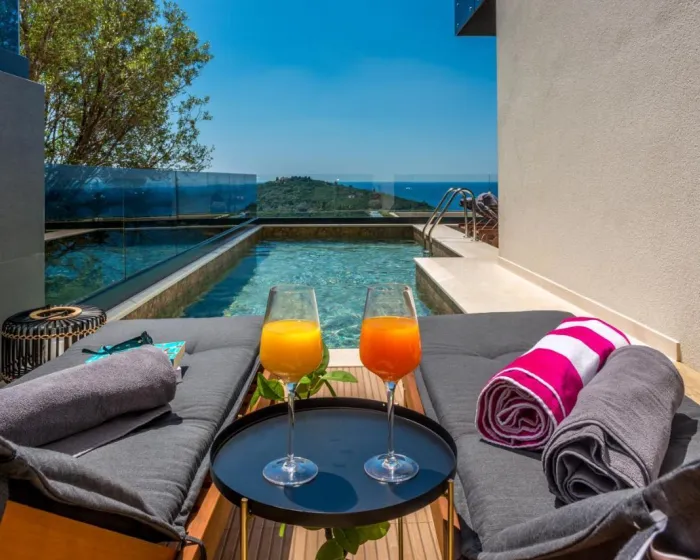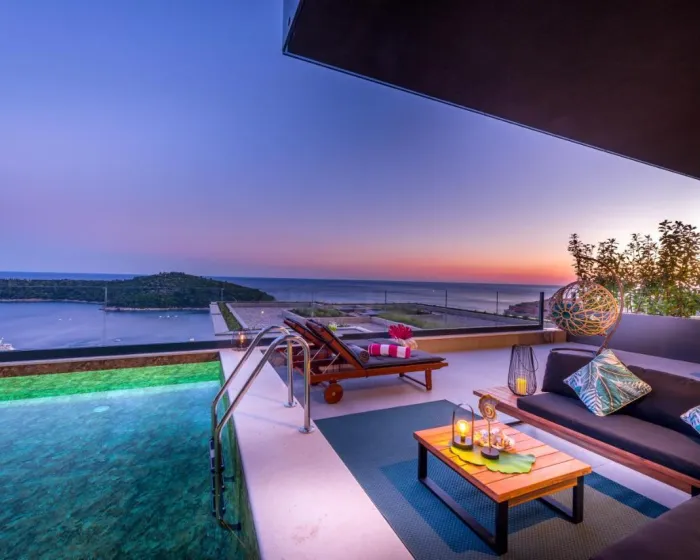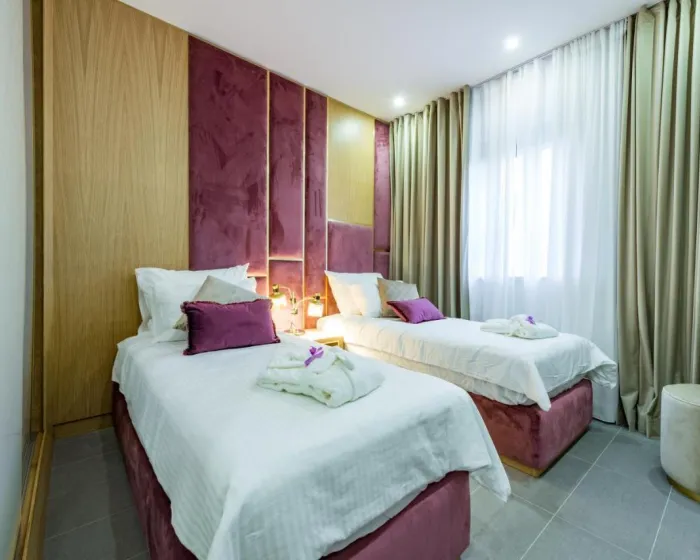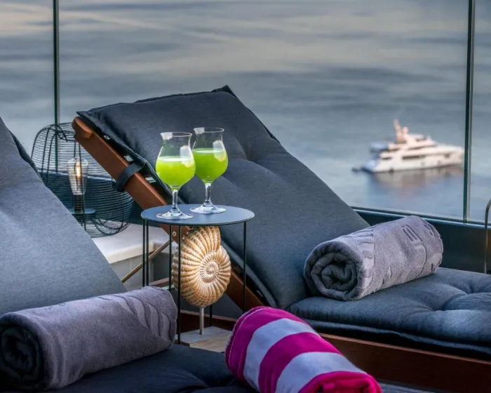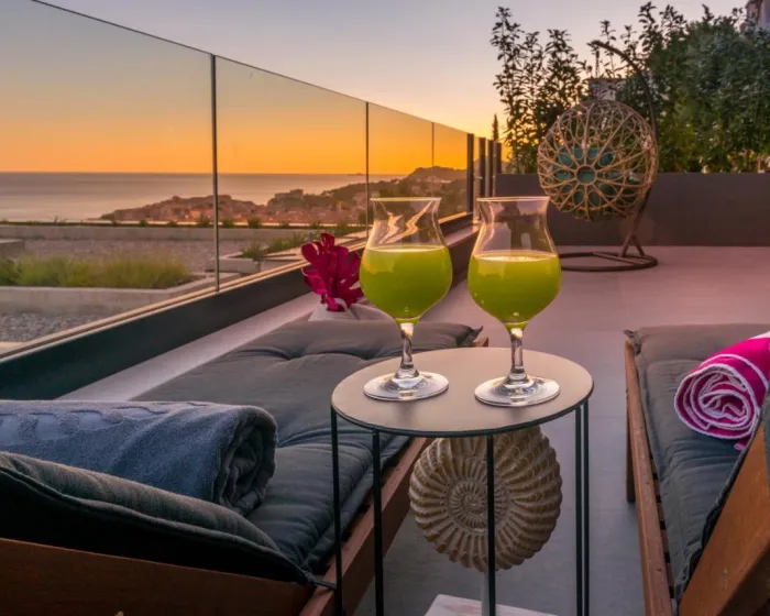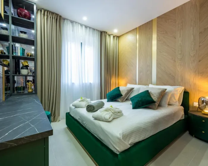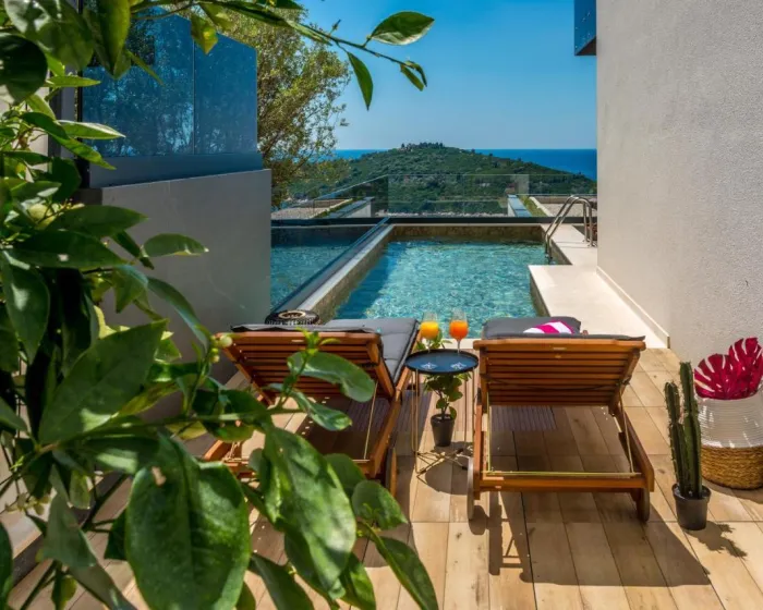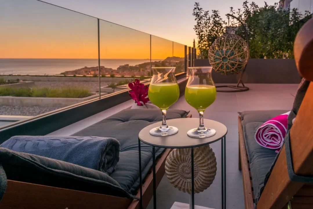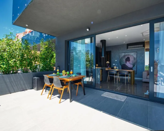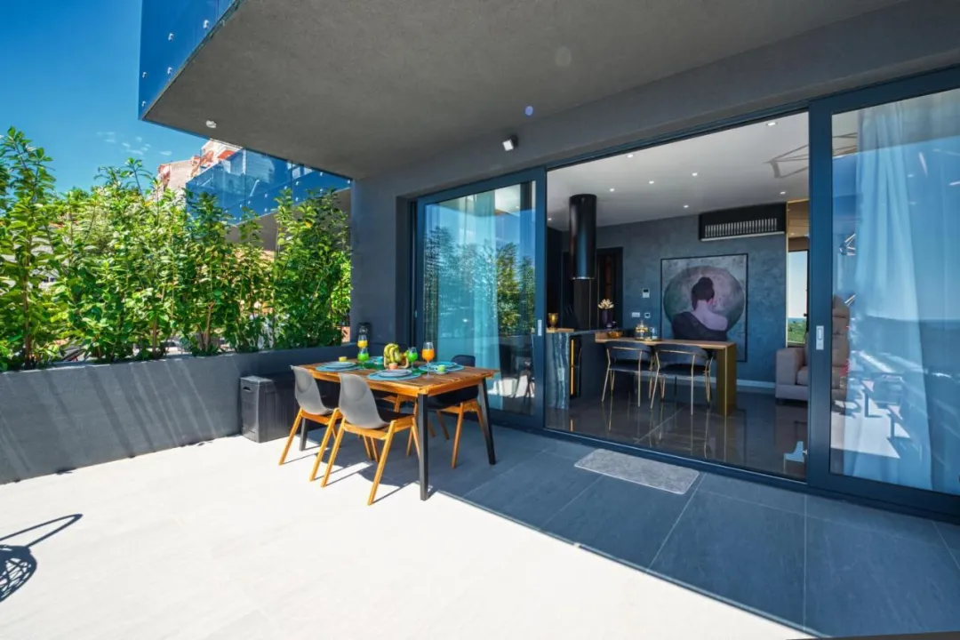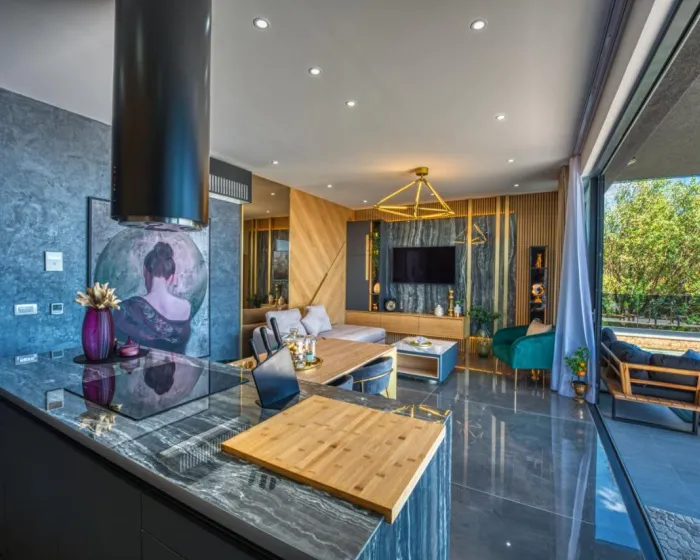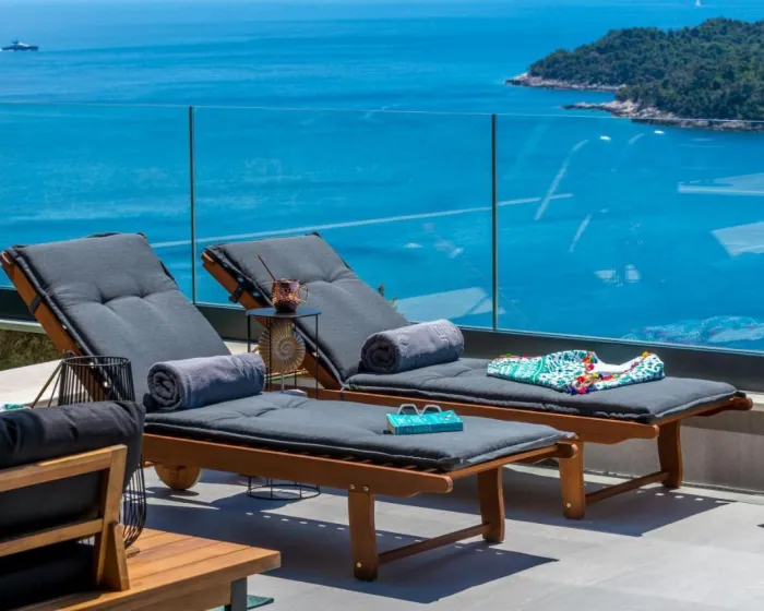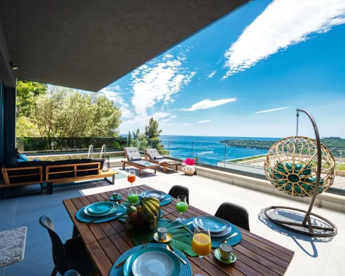 Prostrani apartman sa terasom i pogledom na more ima 2 spavaće sobe, dnevni boravak, flat-screen TV, opremljenu kuhinju sa mašinom za pranje sudova i rernom, te 3 kupatila sa tušem. Peškiri i posteljina dostupni su u apartmanu. Objekat ima vanjski prostor za ručavanje.