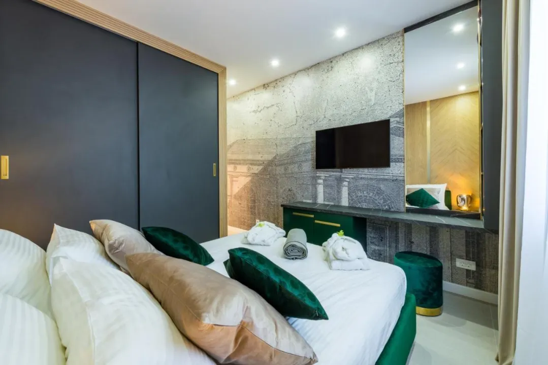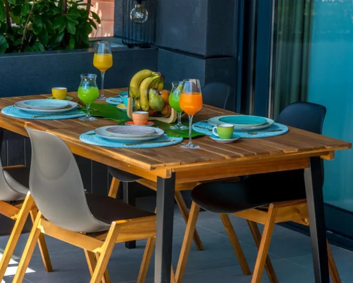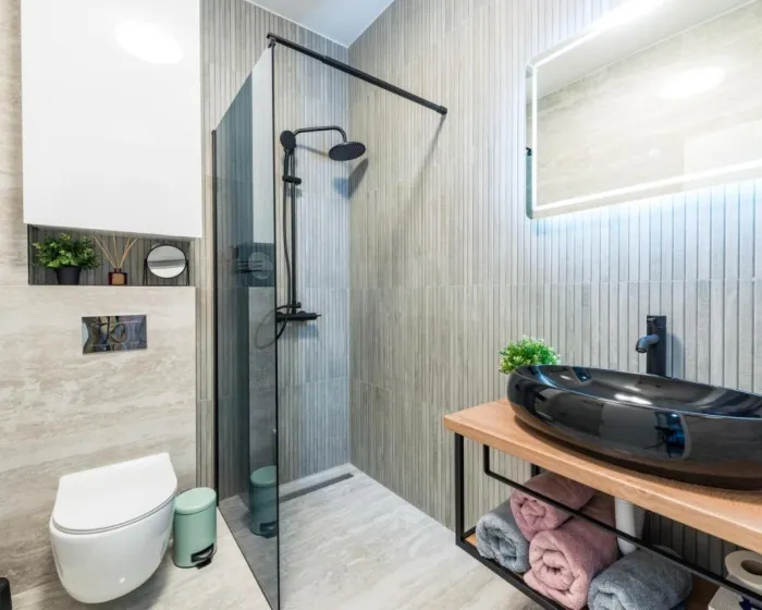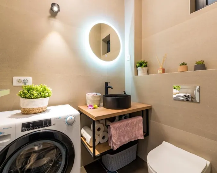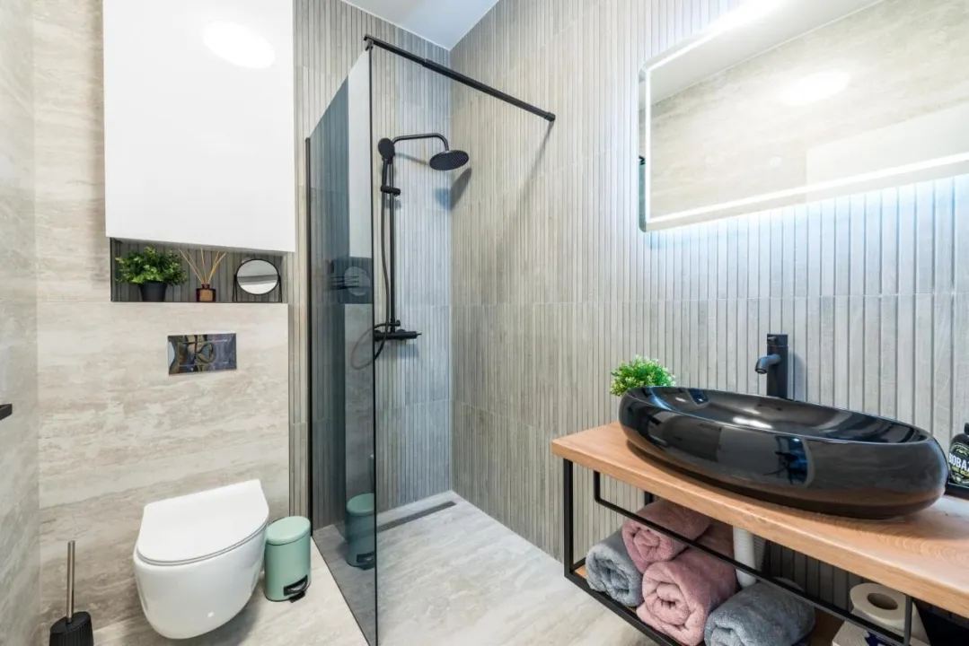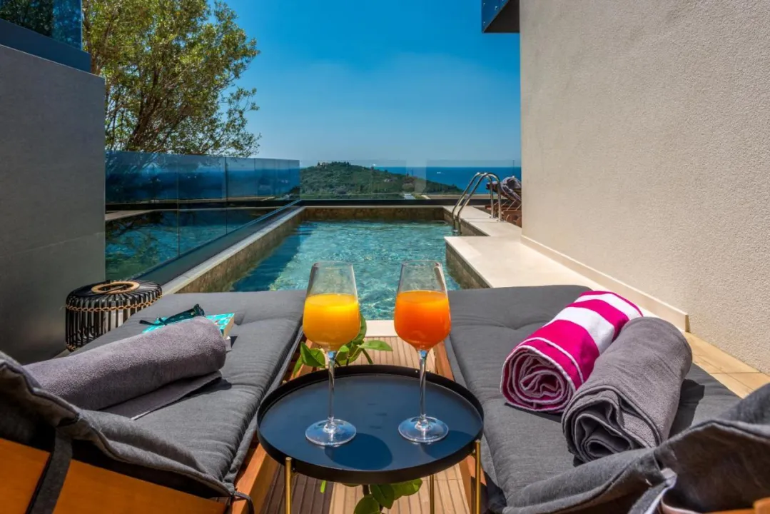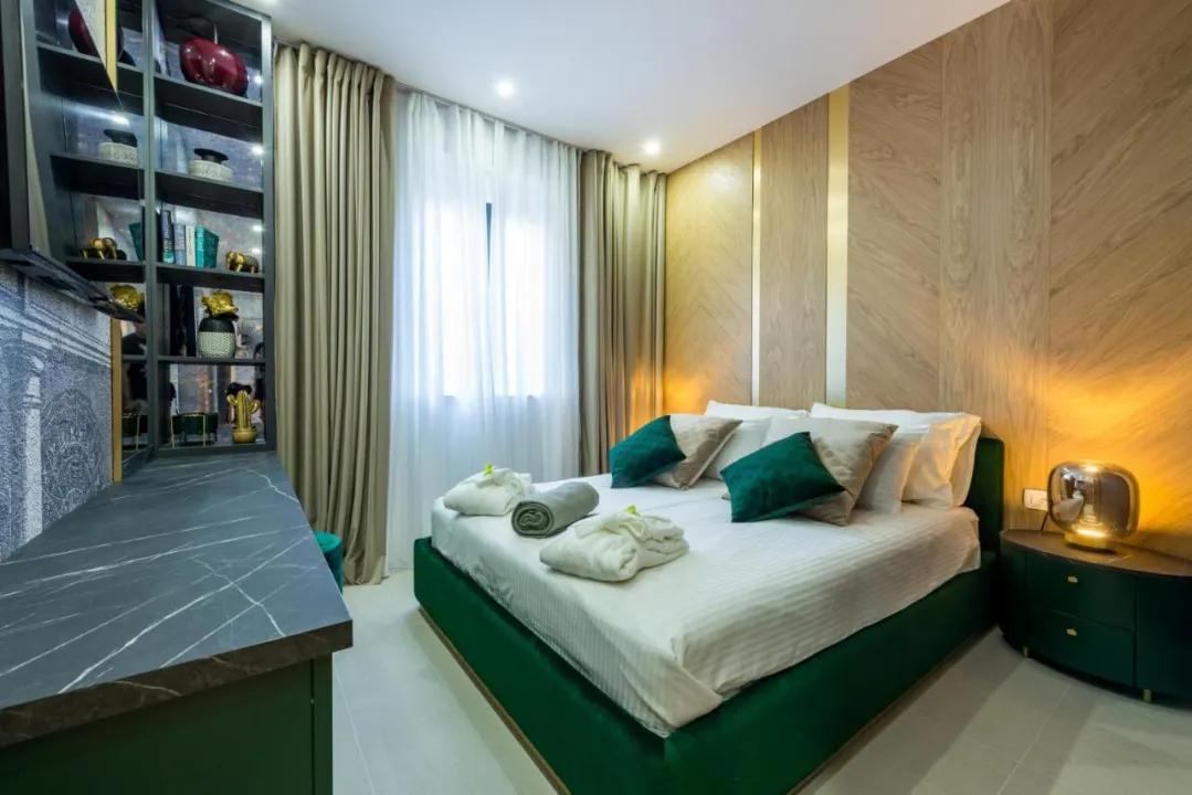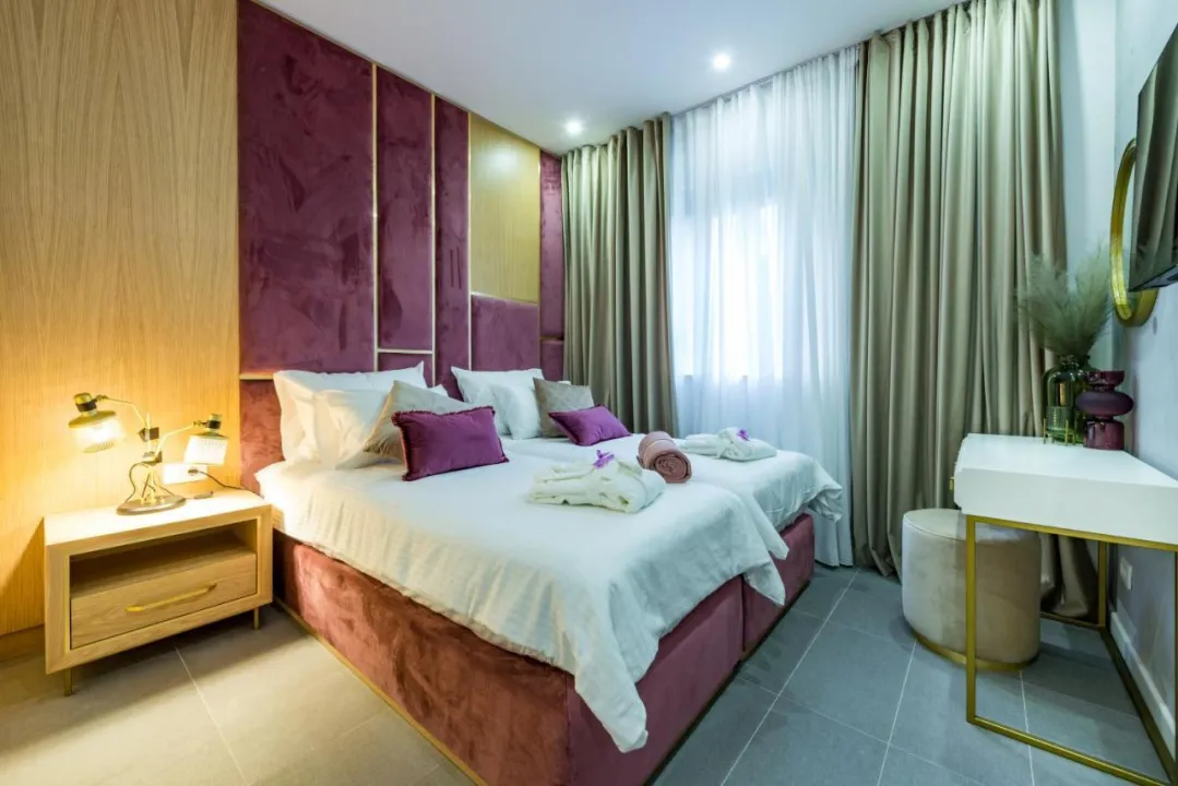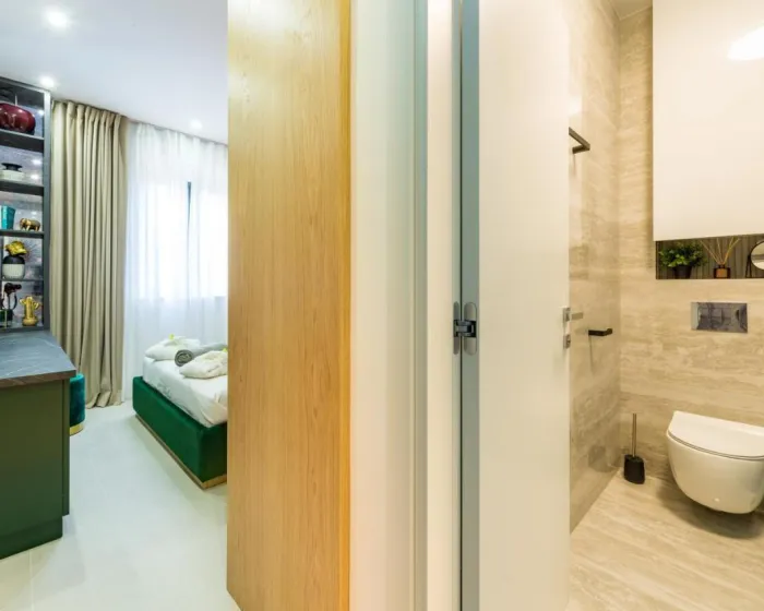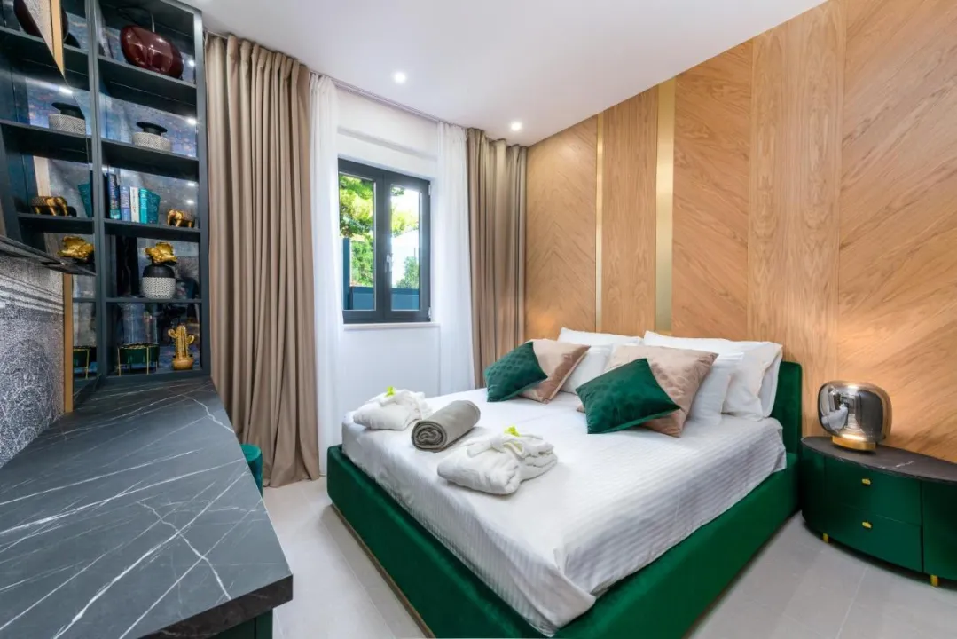 Prostrani apartman sa terasom i pogledom na more ima 2 spavaće sobe, dnevni boravak, flat-screen TV, opremljenu kuhinju sa mašinom za pranje sudova i rernom, te 3 kupatila sa tušem. Peškiri i posteljina dostupni su u apartmanu. Objekat ima vanjski prostor za ručavanje.