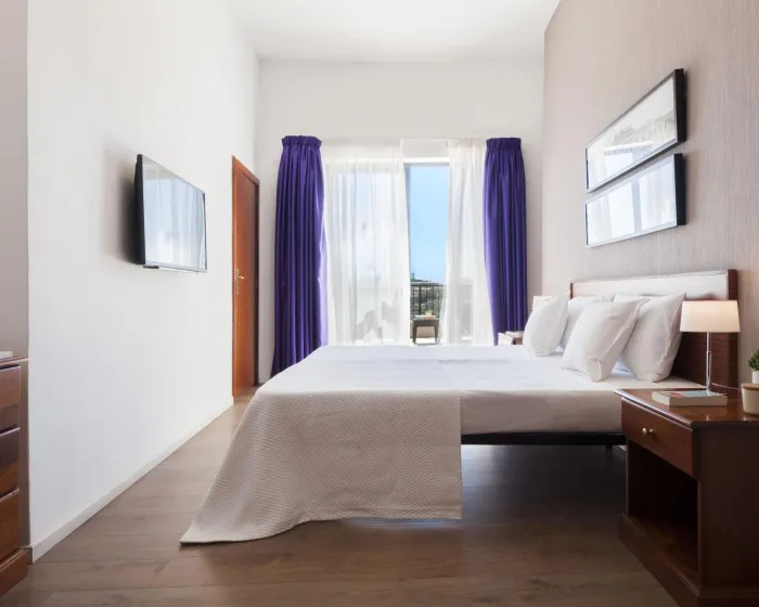 Sobe su opremljene klima uređajem, grejanjem i ventilatorom, kako bi boravak bio što prijatniji. Većina soba ima balkon ili terasu sa pogledom na more. U sobama se nalazi bračni krevet, a dodatni ležajevi su dostupni na zahtev. Gostima su na raspolaganju sef i radni sto. Standardna oprema uključuje i mini frižider. Telefon, televizor, radio i WiFi bez doplate obezbeđuju dodatni komfor. Kupatila su opremljena tušem i kadom, kao i fenom za kosu, dok je gostima obezbeđen izbor peškira. Hotel raspolaže i porodičnim sobama.