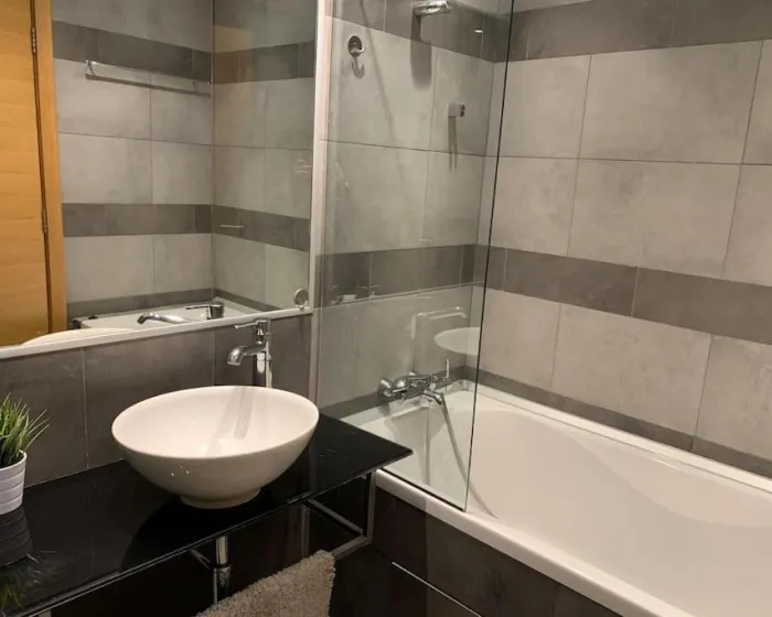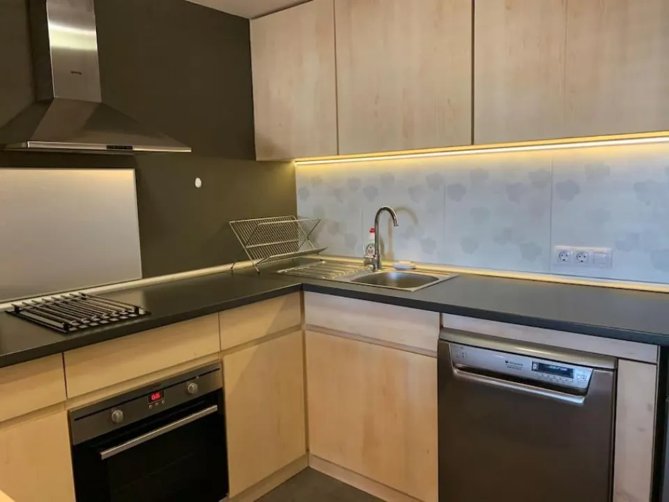 Prostrani stan ima 1 spavacu sobu, flat-screen TV sa kablovskim kanalima, potpuno opremljenu kuhinju sa sudomasinom za sudove i rernom, masinom za pranje veša, i 1 kupatilo sa đakuzijem. Peškiri i posteljina su obezbeđeni u stanu. Na raspolaganju je i prostorija za presvlacenje za goste.