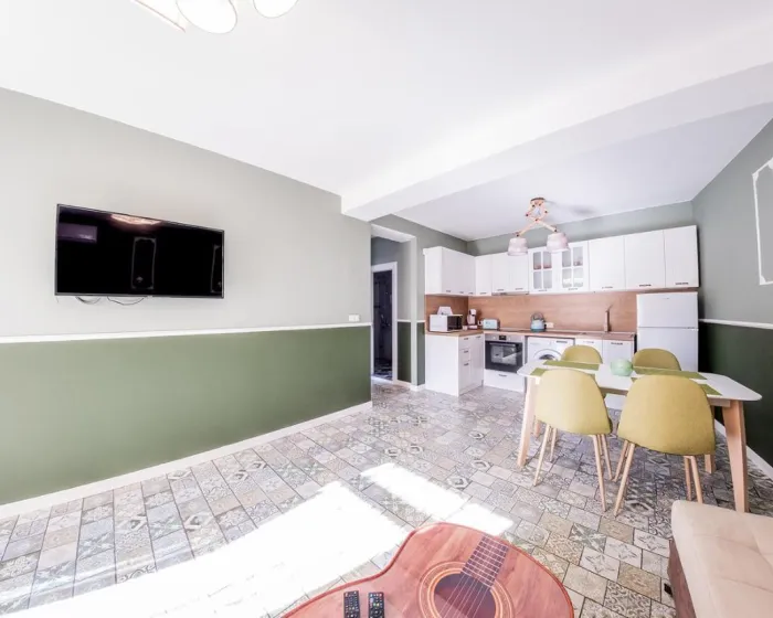Apartman ima 2 spavaće sobe, 1 kupatilo, posteljinu, peškire, flat-screen TV sa kablovskim kanalima, trpezariju, potpuno opremljenu kuhinju i terasu sa pogledom na grad. Radi veće privatnosti, smeštaj ima privatni ulaz.