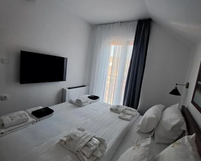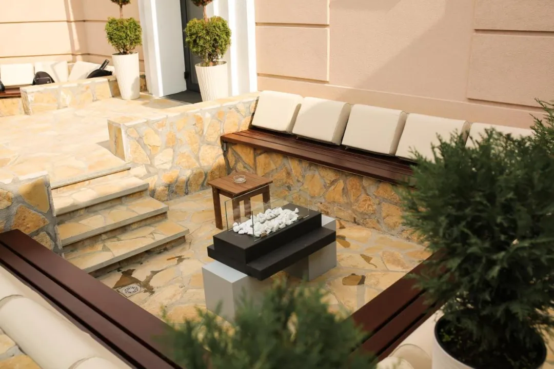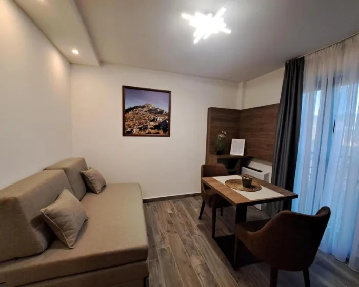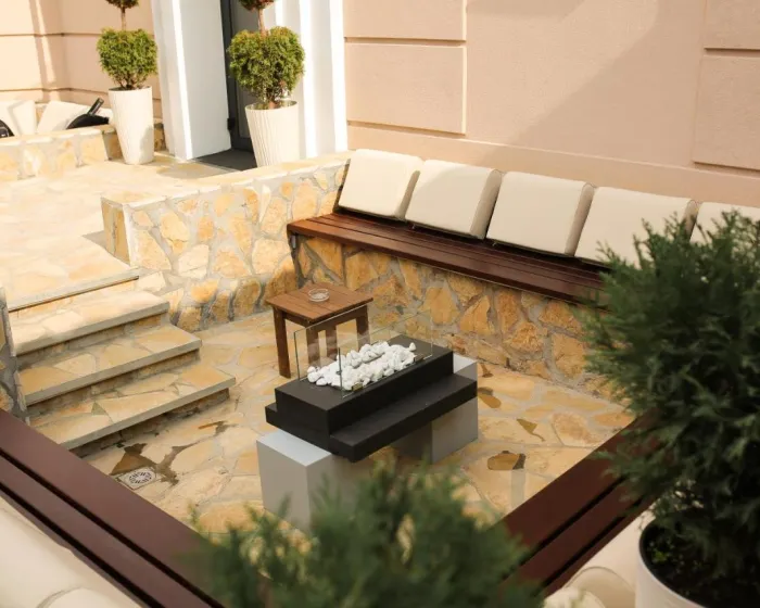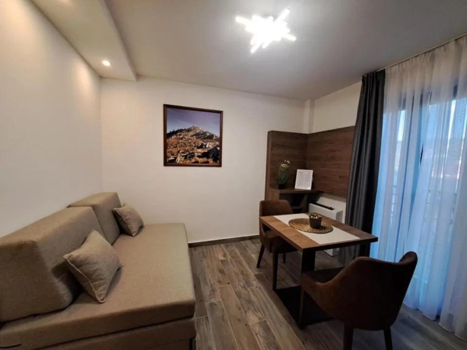 Apart-hotel ima spoljni kamin i sezonski spoljni bazen.