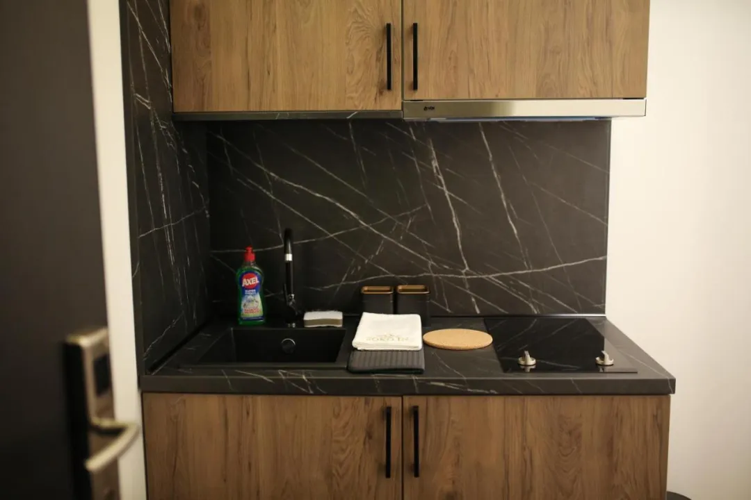 Smeštaj je opremljen klima uređajem, potpuno opremljenom kuhinjom sa trpezarijom, flat-screen TV-om i privatnim kupatilom sa tušem, bade mantilima i papučama. Frižider, šporet i mini bar su takođe dostupni, kao i kuvalo. U apart-hotelu, jedinice su opremljene posteljinom i peškirima.