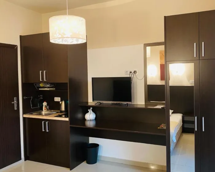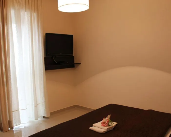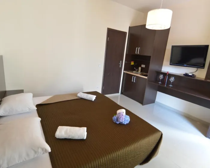 Klima uređaj i centralno grejanje osiguravaju da sobe održavaju prijatnu temperaturu. U većini jedinica, gosti mogu uživati u pogledu na more sa balkona ili terase. Sobe imaju bračni krevet, krevet queen size ili sofu na razvlačenje. Mini bar je dostupan. Kuhinja sadrži opremu za kafu/čaj. Televizor sa satelitskim/kablovskim kanalima, radio, alarm sat i WiFi (bez dodatnih troškova) pružaju sve potrebno za udoban odmor. Kupatila su opremljena tušem. Za dodatnu udobnost, gostima su obezbeđeni kozmetički proizvodi i izbor peškira. Smještaj ima porodične sobe i sobe za nepušače.