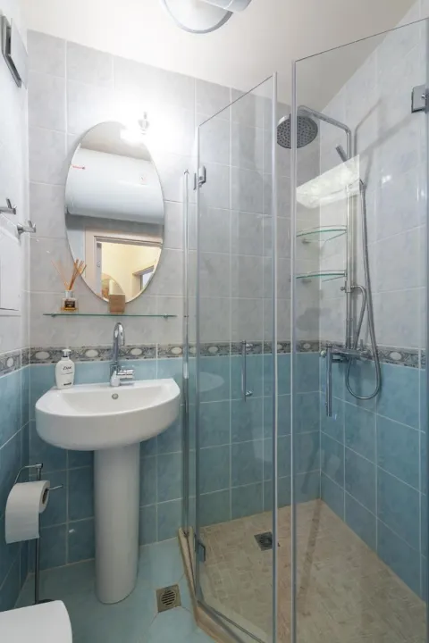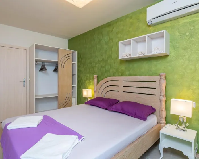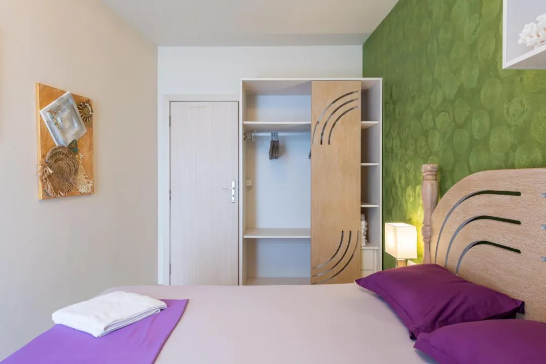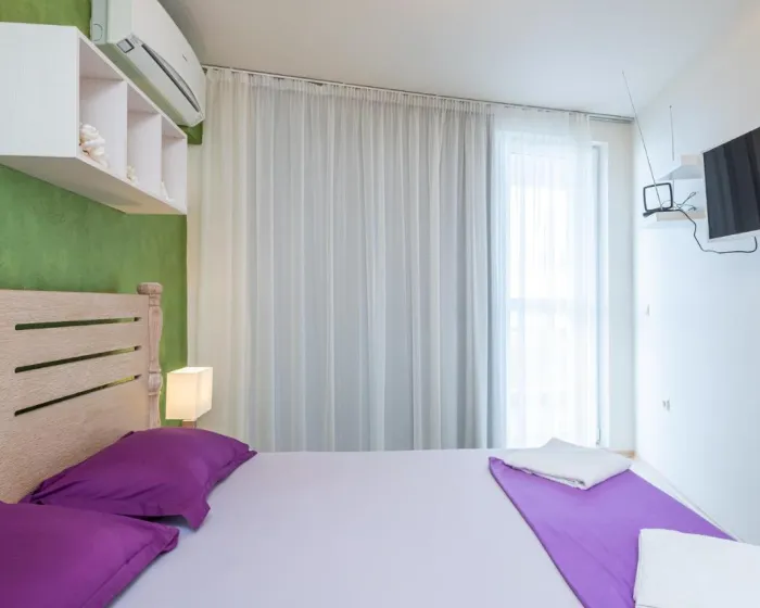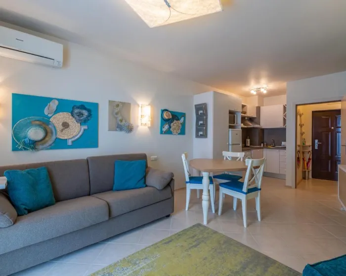 Apartman ima 1 spavaću sobu, 1 kupatilo, posteljinu, peškire, flat-screen TV sa satelitskim kanalima, potpuno opremljenu kuhinju i terasu sa pogledom na more.