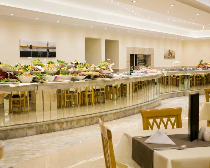 Hotelska ponuda ishrane uključuje restoran, kafe i bar. Mogu se rezervisati polupansion, pun pansion ili all inclusive. Bogat doručak na bifeu, ručak i obimna večera pružaju širok i ukusan izbor. Po zahtevu se pripremaju dijetetski, bezglutenski i dečiji obroci, dok su dostupne i posebne opcije ishrane i užine. U ponudi su alkoholna i bezalkoholna pića.