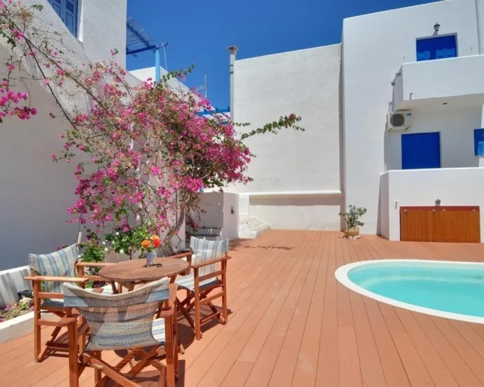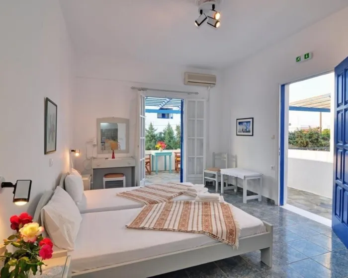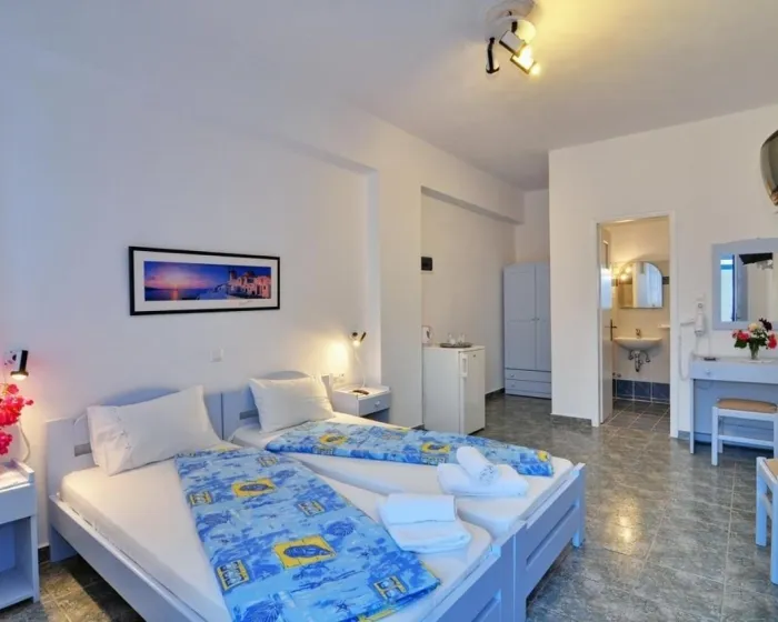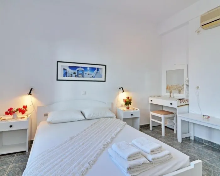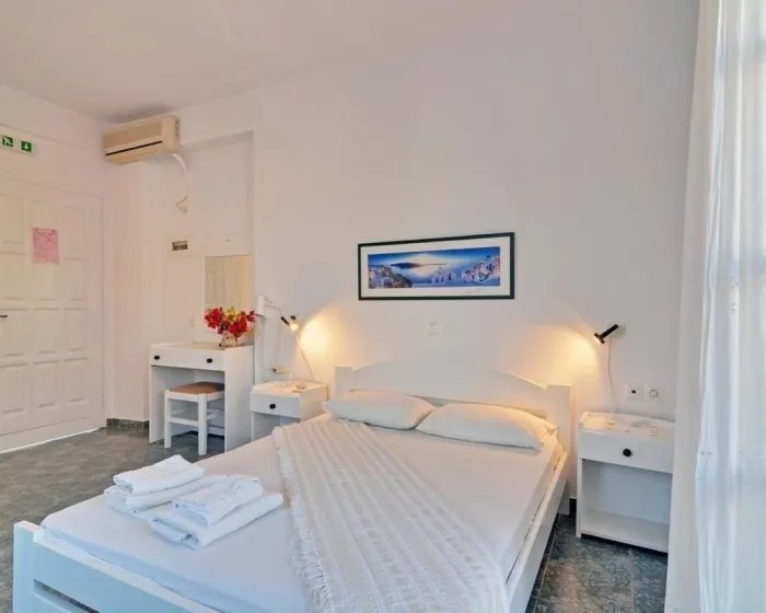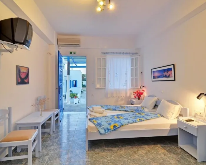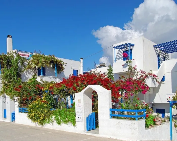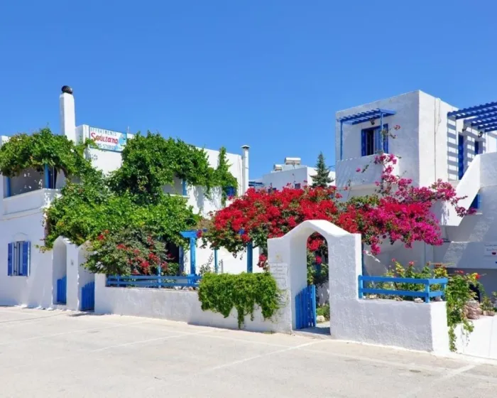 Opis: Soultana Apartments, sobe i studiji u Poloniji, Milos, su pažljivo uređen objekat lociran na poluostrvu Pelekouda, u Poloniji, Milos, oko sto metara udaljen od vode. Sobe i apartmani Soultana nalaze se na udobnoj udaljenosti od glavne plaže Polonije, dečijeg igrališta, mini marketa i restorana pored mora, i na samo korak od plaže Pelekouda. U Soultani postoje dvokrevetne i trokrevetne sobe i studiji, kao i neki od najlepših i prostranih apartmana u Poloniji i celom Milosu. Međutim, u Soultani postoji samo dva takva apartmana i brzo se popunjavaju, stoga se preporučuje rana rezervacija. Svaki apartman u Soultani uključuje 2 spavaće sobe, veliku dnevnu sobu, veoma prostranu kuhinju sa trpezarijom i toalet, pored glavnog kupatila.