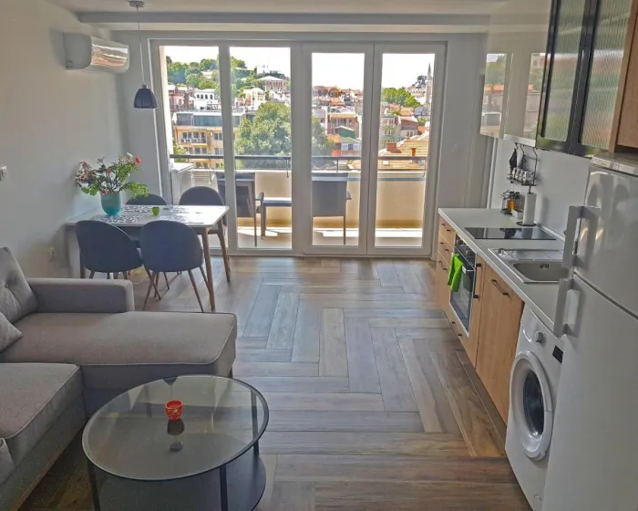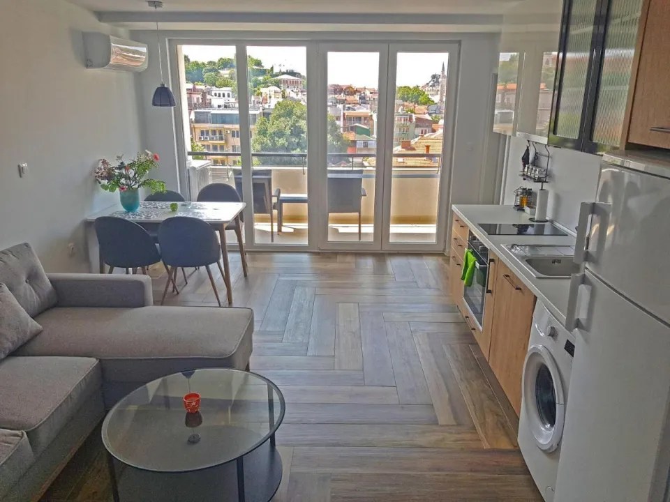 U centru Plovdiva, smešten u neposrednoj blizini Međunarodnog sajma Plovdiv i Rimskog pozorišta Plovdiv, Juzni Panoramski Apartman u umetničkoj četvrti Kapana nudi besplatan WiFi, klima uređaj i kućne pogodnosti kao što su rerna i aparat za kafu. Sa pogledom na vrt, smeštaj ima terasu. Apartman ima sadržaje za osobe sa invaliditetom.