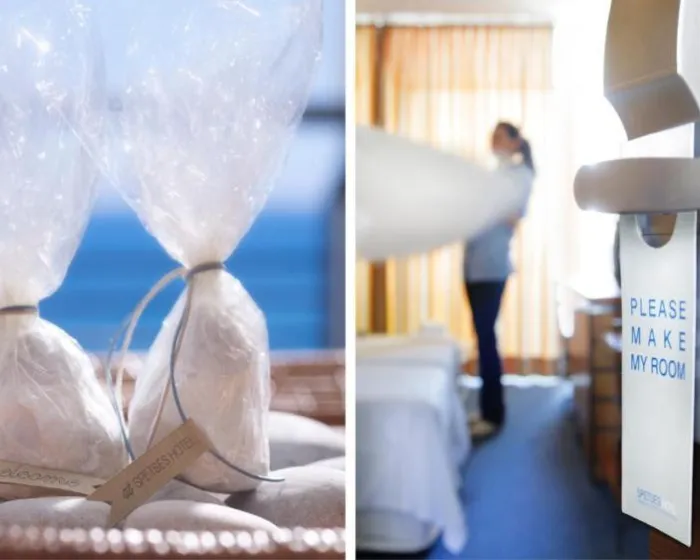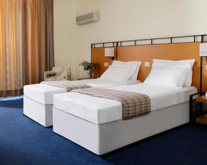 Sobe su opremljene klima uređajem i individualno podesivim grejanjem. Gosti mogu opustiti i uživati u pogledu na more sa balkona ili privatne terase nekih soba. Gosti sigurno će imati dobar san na bračnom krevetu. Dodatni kreveti mogu biti zatraženi. Sef i mini bar su takođe dostupni. Direktni telefonski poziv, televizor sa satelitskim/kablovskim kanalima i WiFi (bez dodatne naplate) su takođe obezbeđeni. Fen za kosu i telefon se nalaze u kupatilima, koja uključuju tuš i kadu. Za dodatnu udobnost u kupatilima, gostima se nude kozmetički proizvodi. Hotel ima porodične sobe i sobe za nepušače.