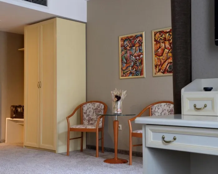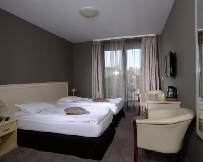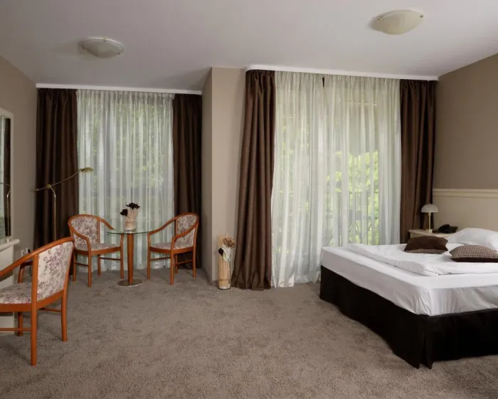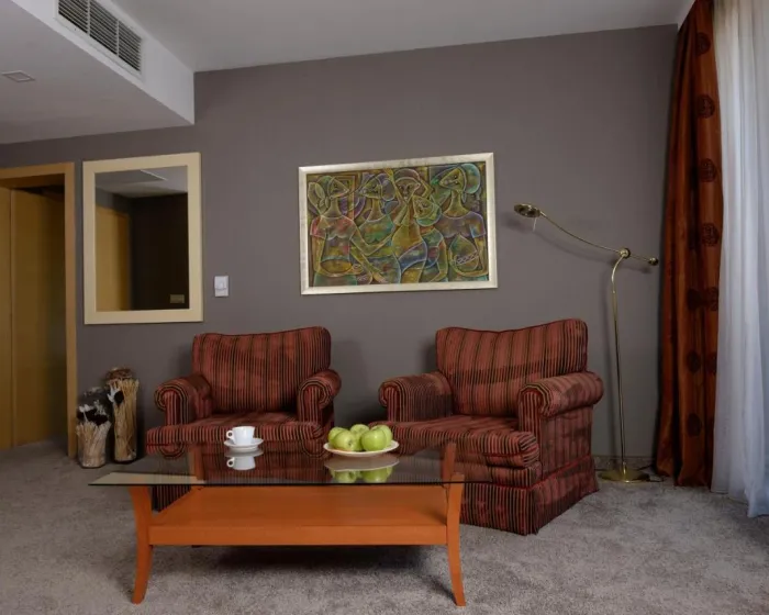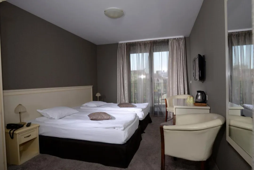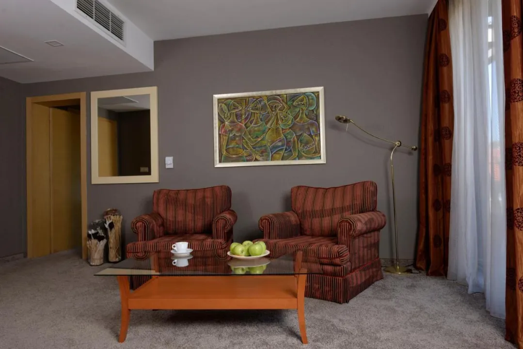 Klima uređaj i centralno grejanje osiguravaju da sobe održavaju ugodnu temperaturu. Gosti mogu odmoriti na balkonu ili terasi. U sobama se nalazi bračni krevet i sofa na razvlačenje. Dodatni kreveti mogu biti zatraženi. Takođe su dostupni sef, minibar i radni sto. Gosti će naći i aparat za čaj/kafu među standardnim sadržajima. Set za peglanje je obezbeđen radi gostićeve udobnosti. Takođe su obezbeđeni TV i WiFi. Kupatila su opremljena tušem i fenom za kosu. Radi dodatne udobnosti u kupatilima, gostima se nude kozmetički proizvodi. Moguće je rezervisati sobe prilagođene osobama sa invaliditetom. Hotel ima porodične sobe i sobe za nepušače.